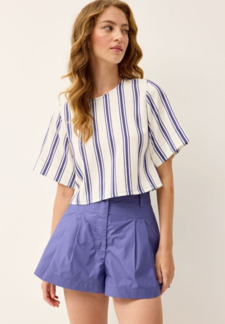 A chic khaki short reboot: Lander’s tailored pleats result in a fit that’s as flattering and feminine as it is utilitarian. Made from a sleek cotton chino, the A-line short is designed to sit high on your waist and features a removable belt with long, corded ties. This season, we’re styling the fully-lined silhouette with new knits and romantic wovens.