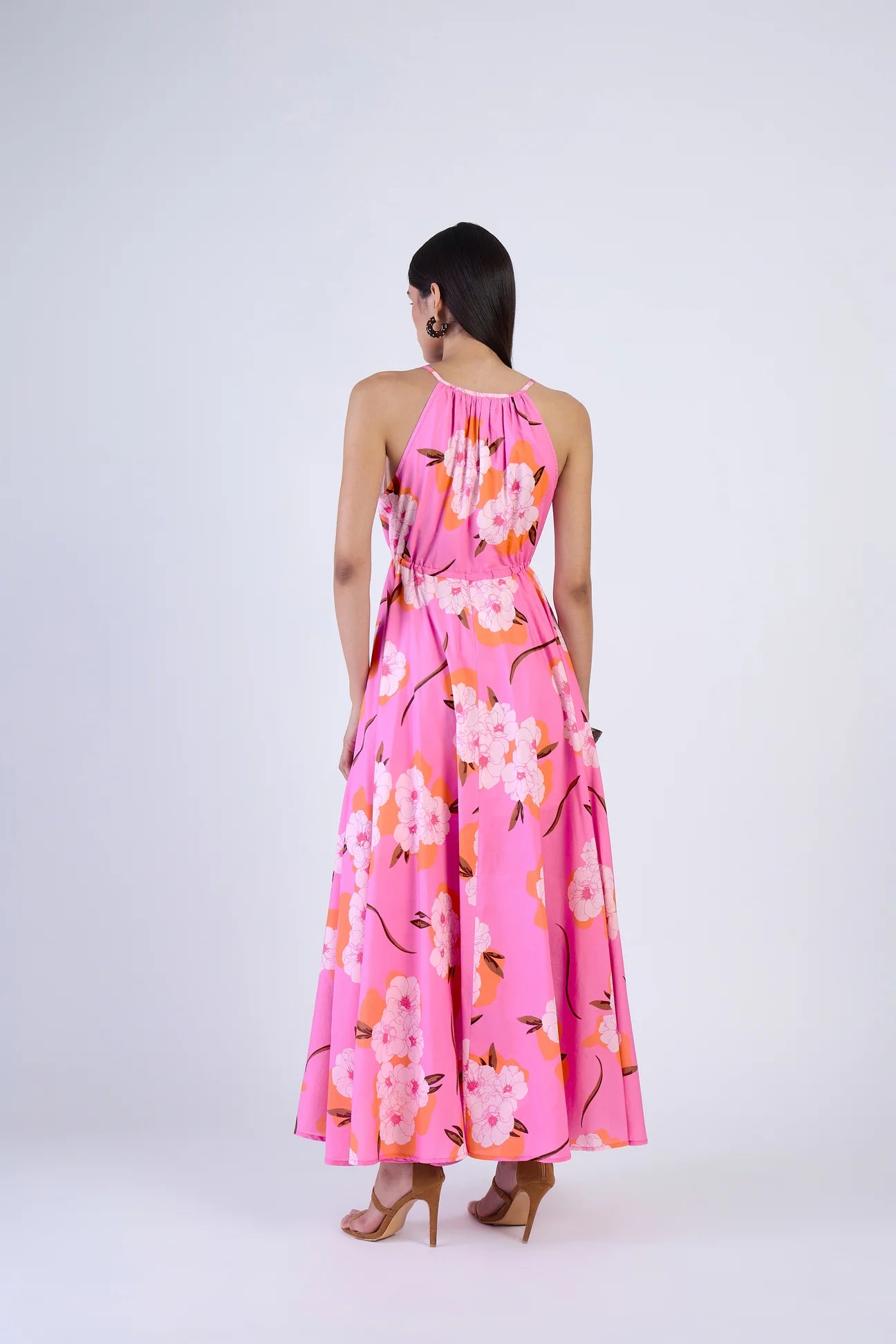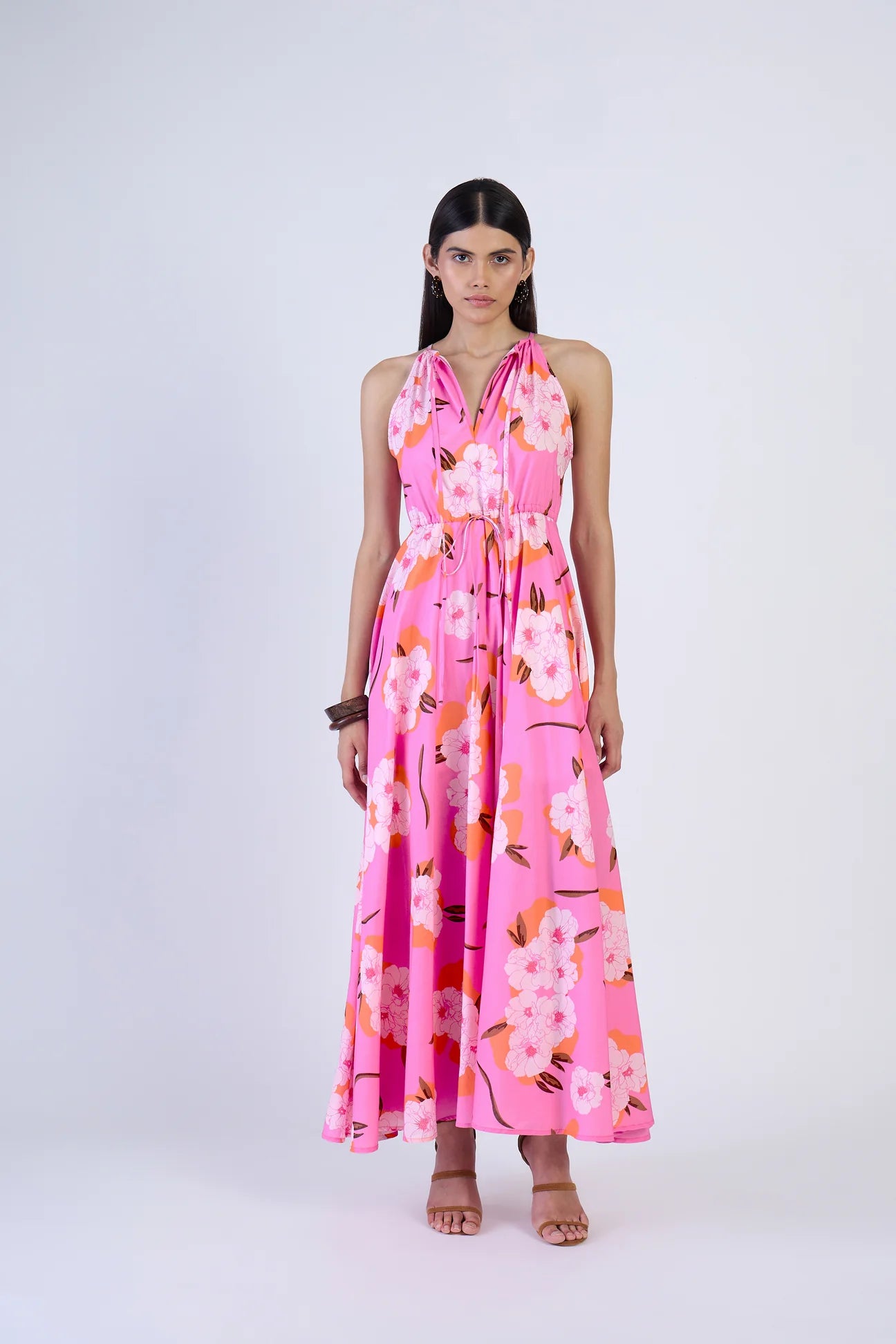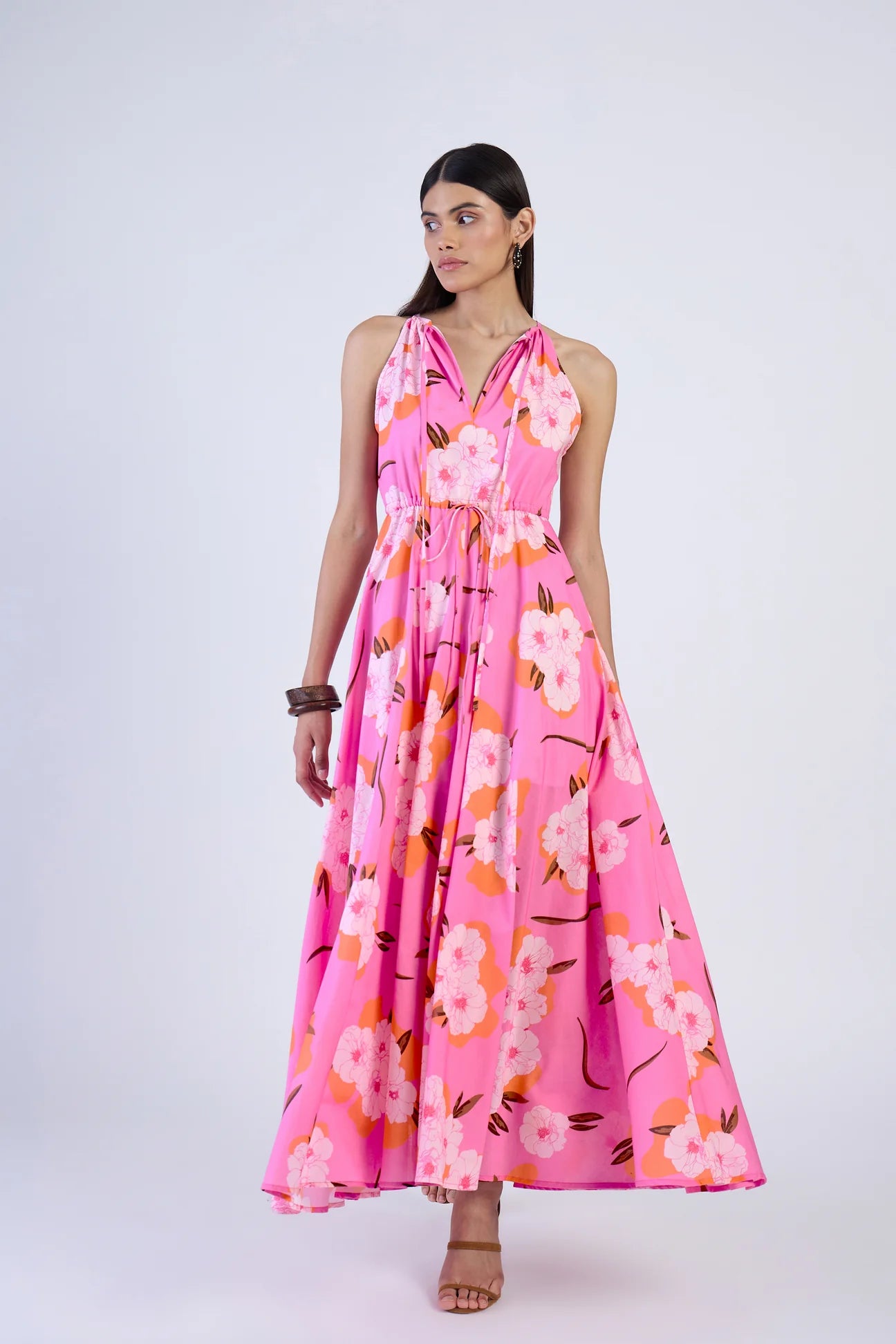 The Marina is a captivating silhouette designed to stun. This maxi dress flows gracefully in the breeze, exuding an airy elegance. With its beautiful halter neck and adjustable drawstring waist, you can effortlessly customize the fit, whether you prefer a relaxed or cinched look. Marina is made from airy cotton voile soft, breathable, and effortlessly breezy. Bold peonies bloom across this modern floral print, evoking afternoon tea in the garden of an old English manor. A vibrant nod to heritage with a contemporary twist.
