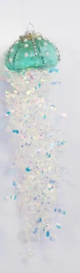 Add an ocean-inspired touch to your decor with this delicate Jellyfish Ornament. Crafted to capture the graceful movement and intricate beauty of a jellyfish, it makes a unique accent for any room or holiday tree. Lightweight and detailed, this ornament brings a subtle marine charm wherever it's displayed.