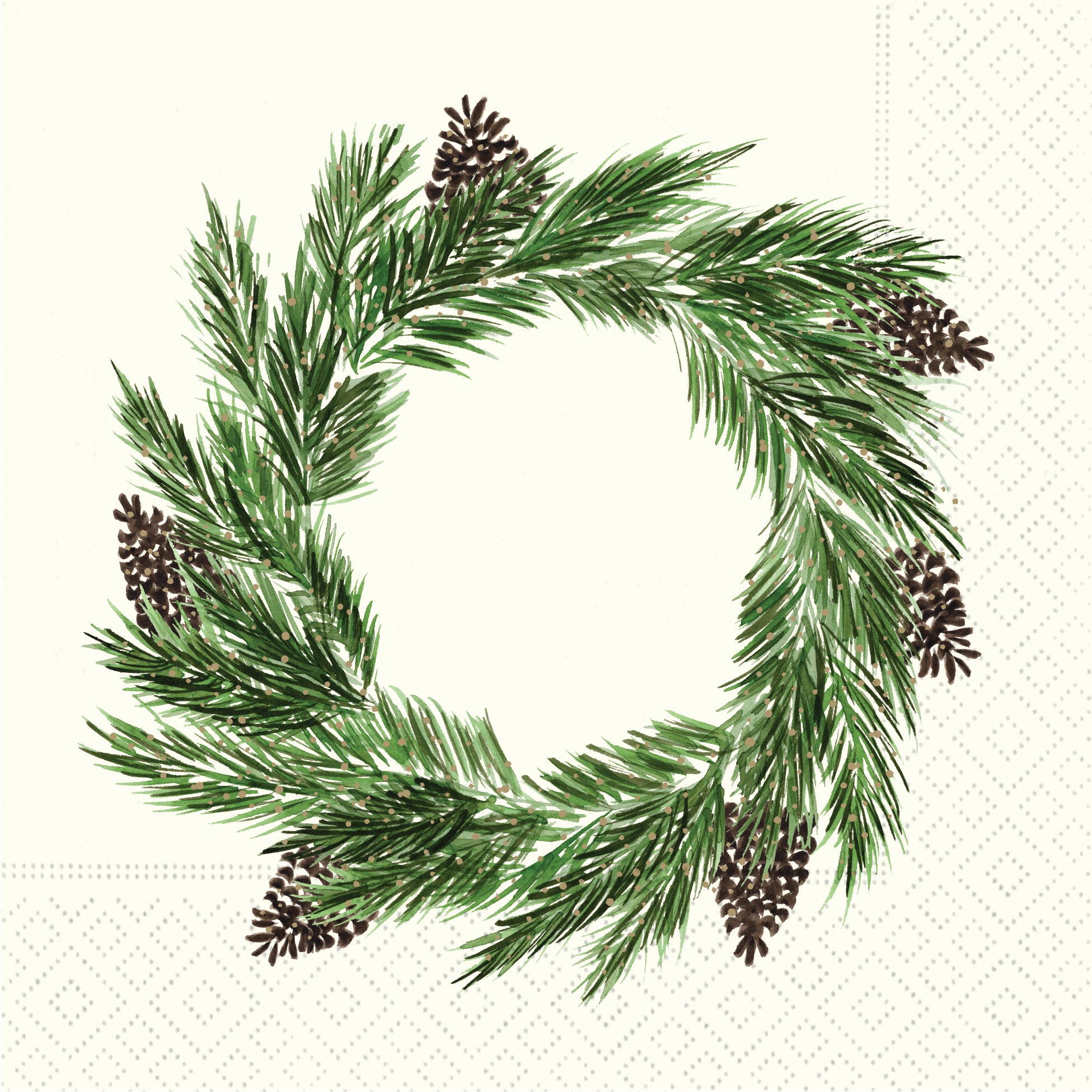Embrace holiday elegance with these luncheon napkins adorned with a serene pine wreath and pinecones, accented with luxurious gold foil detailing. Ideal for festive gatherings, they bring a natural touch of sophistication to your table setting, making every meal feel like a special occasion. Perfect for adding a warm, seasonal charm to your holiday celebrations!