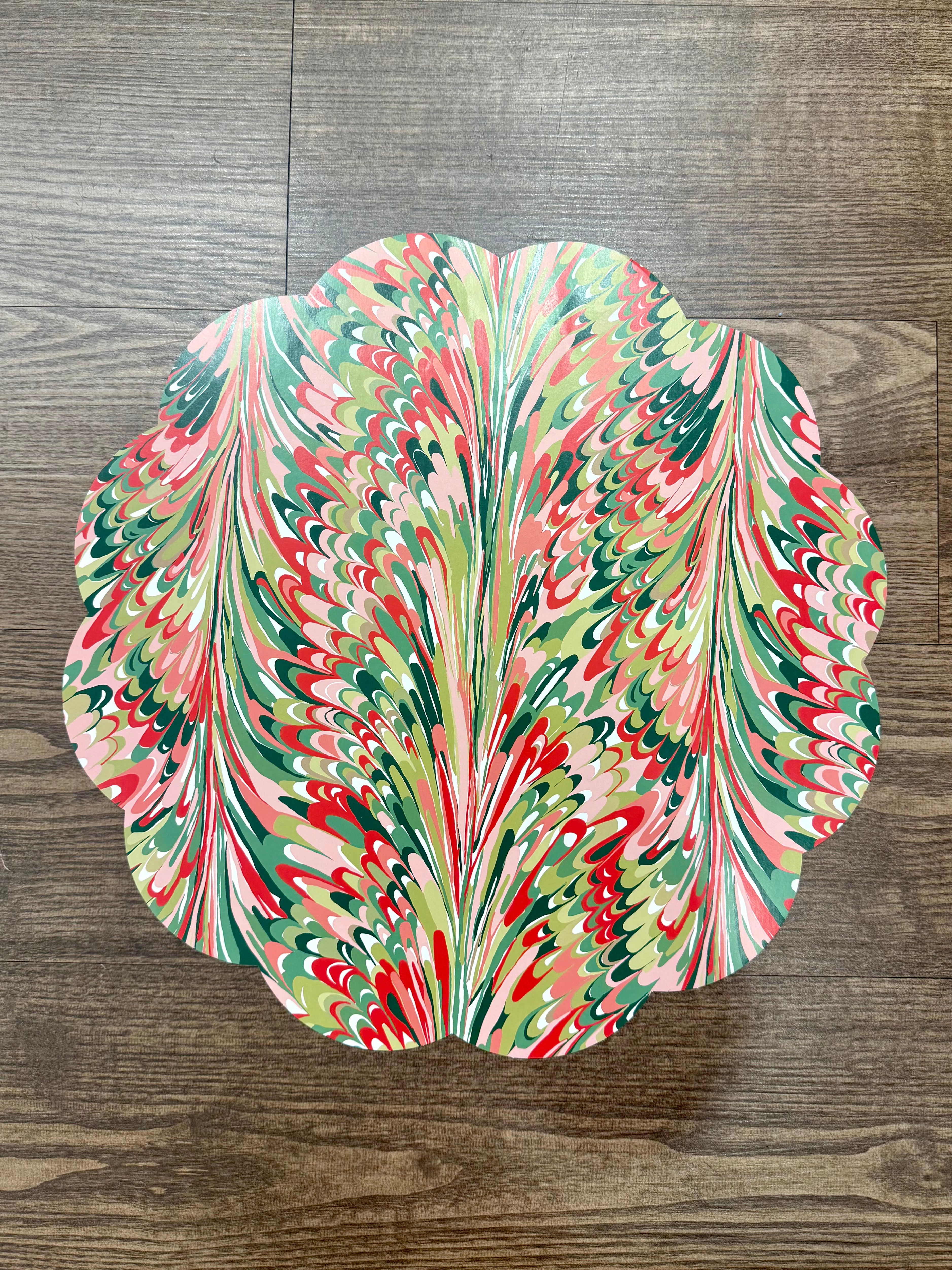 Elevate your dining experience with these Marble Scalloped Paper Placemats. Featuring a stylish marble design and elegant scalloped edges, they add a touch of sophistication to any table setting. Perfect for everyday meals or special occasions, these placemats offer easy cleanup and protect your surfaces from spills and stains. Durable yet disposable, they combine practicality with refined style.