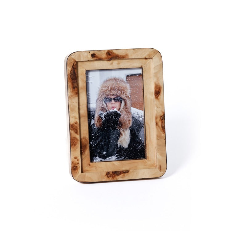 The Valberg Burl Veneer Photo Frame brings natural elegance to any space with its distinctive wood grain pattern. Crafted from premium burl veneer, this frame showcases rich, swirling textures that make each piece uniquely beautiful. Perfect for displaying cherished memories, it combines timeless style with quality craftsmanship. The warm tones and organic finish complement both modern and traditional décor, making it an ideal choice for home or office settings. A sophisticated way to showcase your favorite photographs.
