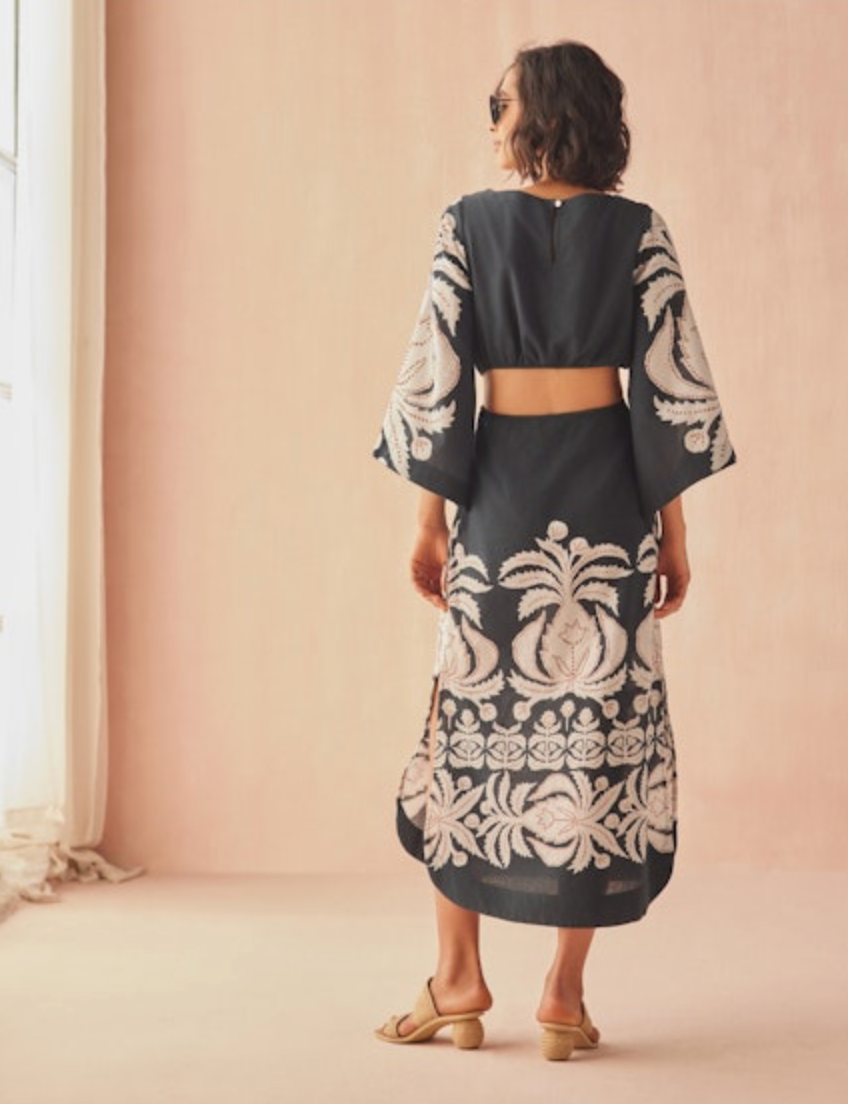 The Peyton Midi Dress combines effortless elegance with modern flair. This midi-length piece features strategic cutouts that add visual interest and a contemporary edge, while voluminous bell sleeves create a romantic, flowing silhouette. Perfect for transitioning from day to evening, the dress offers a flattering fit that works for various occasions. The cutout details provide just the right amount of skin-baring sophistication, while the bell sleeves add movement and dimension. An ideal choice for anyone seeking a statement piece that balances style and wearability.