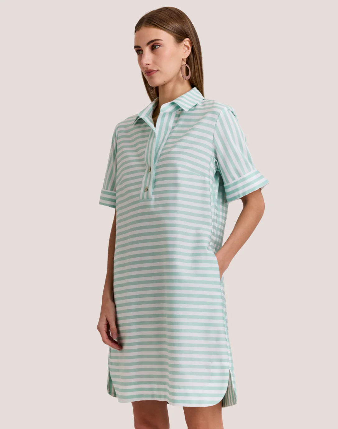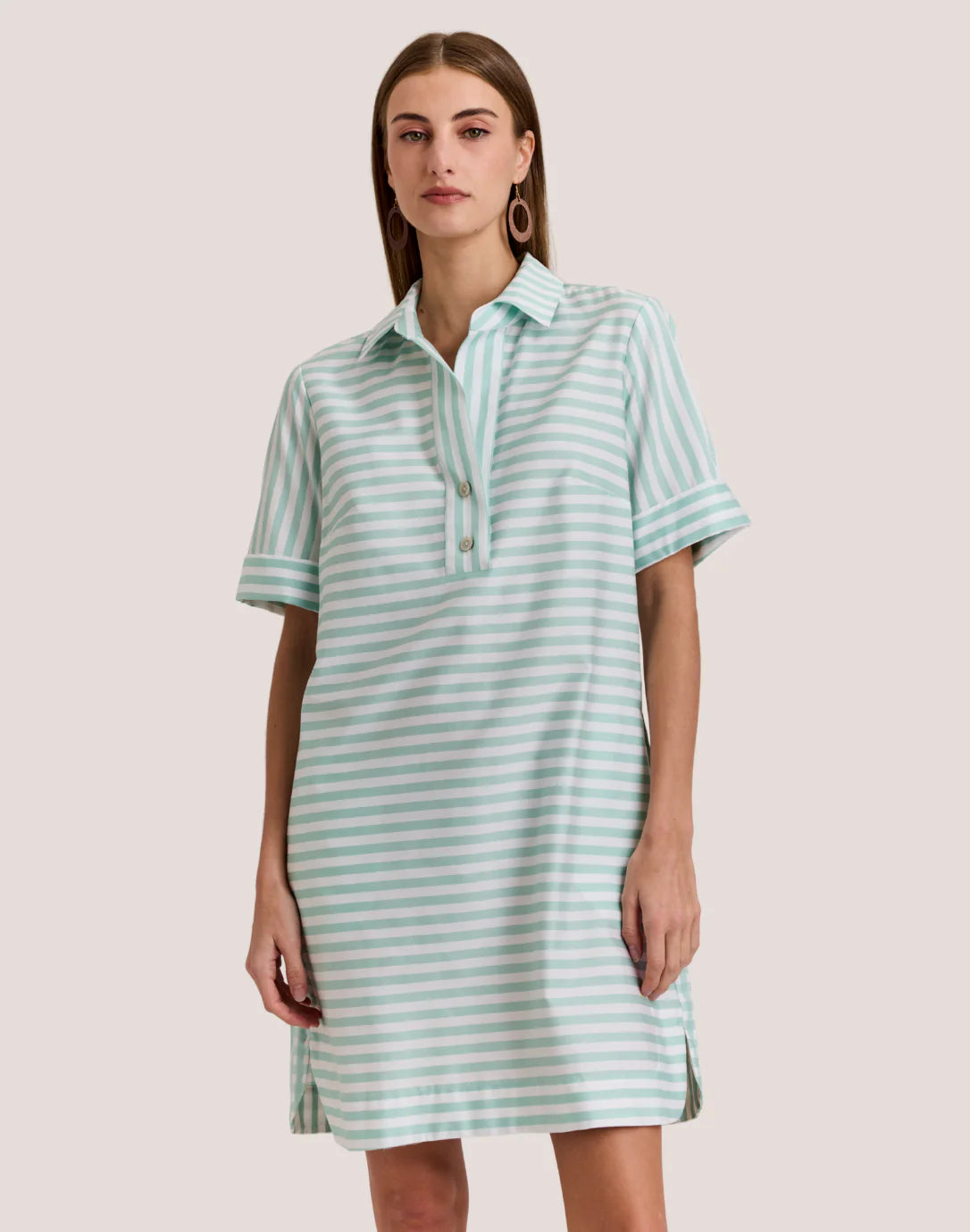Looking forward to brighter and warmer days, this stripe and color coordinated gingham Aileen dress in short sleeves is your perfect companion.