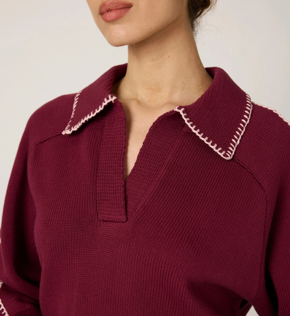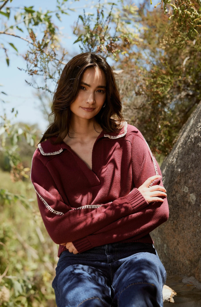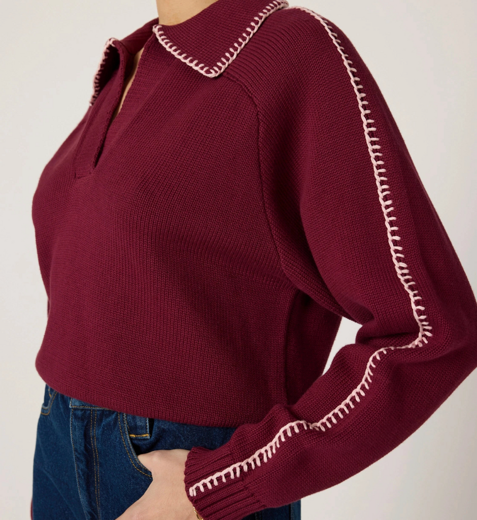 The Elly Sweater is ethically crafted from 100% certified organic cotton for cozy, sustainable style. This raglan-sleeve sweater features a collared neckline and contrast whipstitch detailing, adding a touch of artisan-inspired texture to a timeless silhouette.