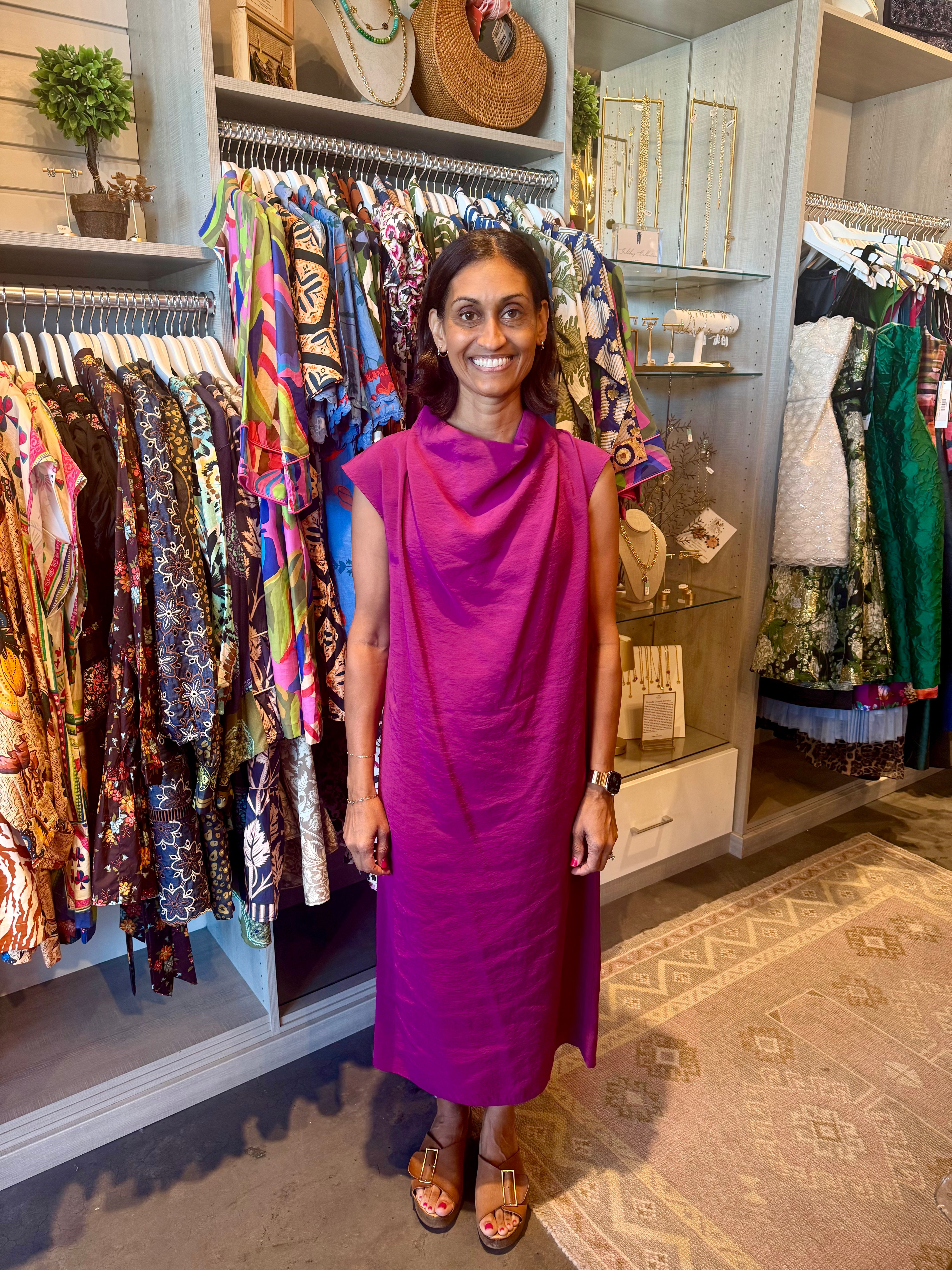 The Gisele Midi Dress features a graceful draped silhouette that enhances your natural shape. Its flattering midi length makes it versatile for both day and evening wear, offering comfort and elegance in one design. Perfect for effortless style at any occasion.