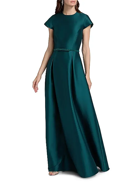 The Blythe Gown is a study in modern elegance and understated glamour. Crafted in luminous stretch Mikado, it features a clean neckline and gently structured cap sleeves for a polished, timeless silhouette. The full A-line skirt moves with graceful fluidity, while a hand-embroidered, faceted bead belt cinches the waist to highlight the figure with a subtle hint of sparkle. Sophisticated and versatile, Blythe is designed for occasions that call for quiet confidence and refined sophistication.