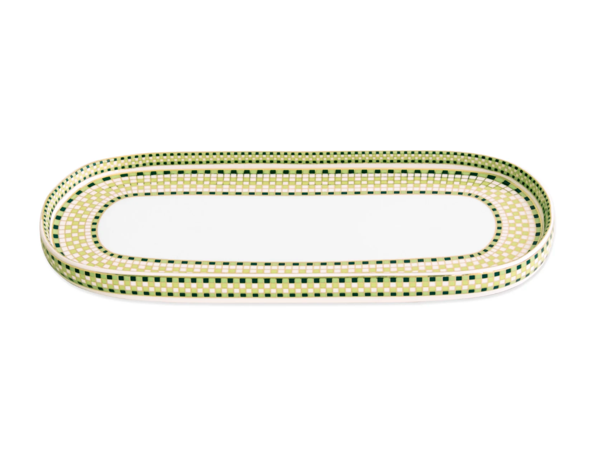 Sleek design meets timeless luxury. The CERAMIC Ravenna Long Oval Platter Set of 2 in green & gold is crafted in durable ceramic with a luminous glaze and a refined gold border. Perfect for serving appetizers, side dishes, or desserts, these versatile platters bring elegance to any table setting.