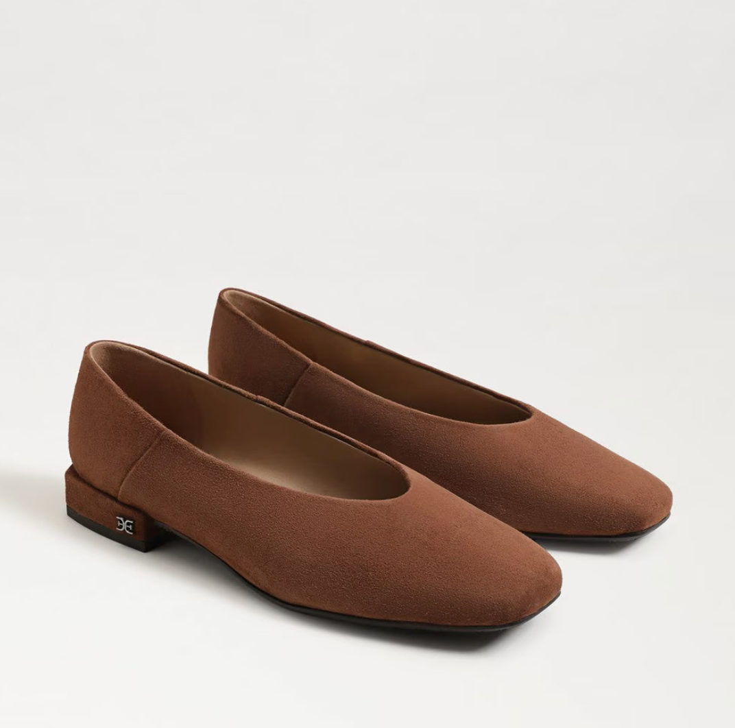 The classic ballet flat gets an of-the-moment upgrade with an angular square toe. And with a low-profile heel, they're up for just about anything.