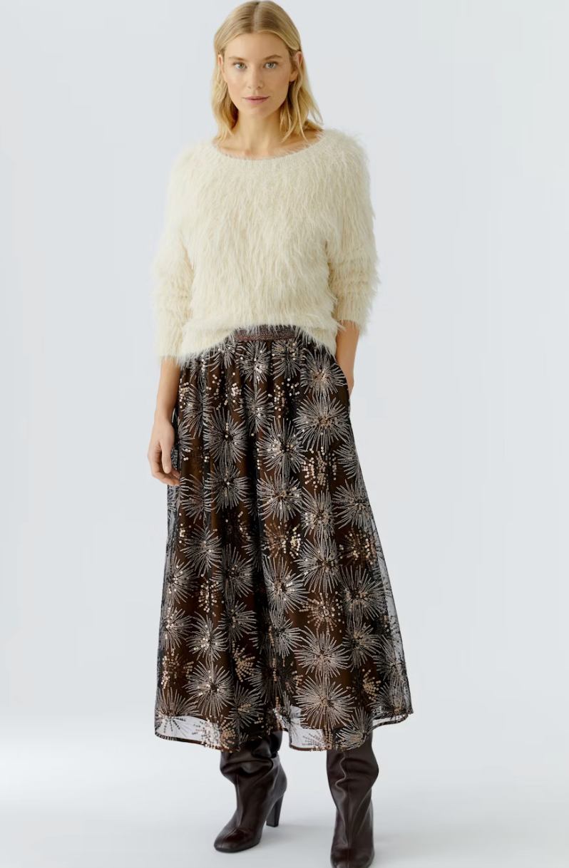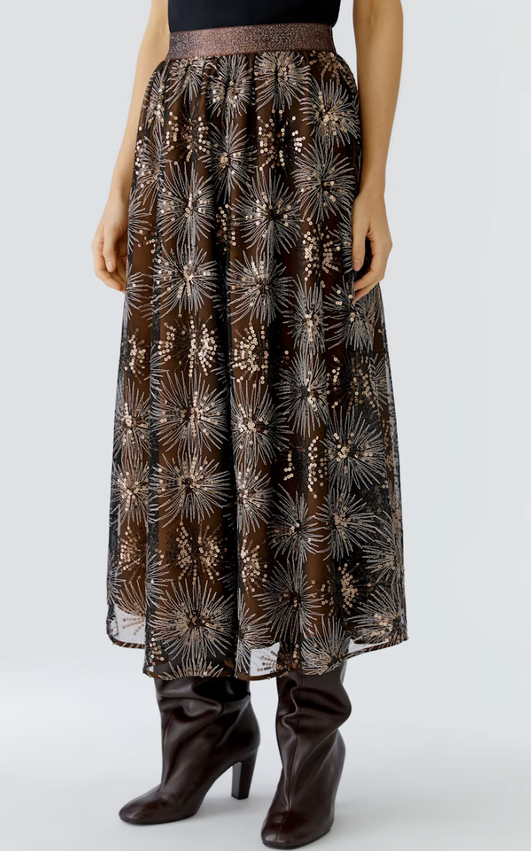 Highlight skirt in maxi length - elaborately embroidered motifs with sequins and contrast embroidery