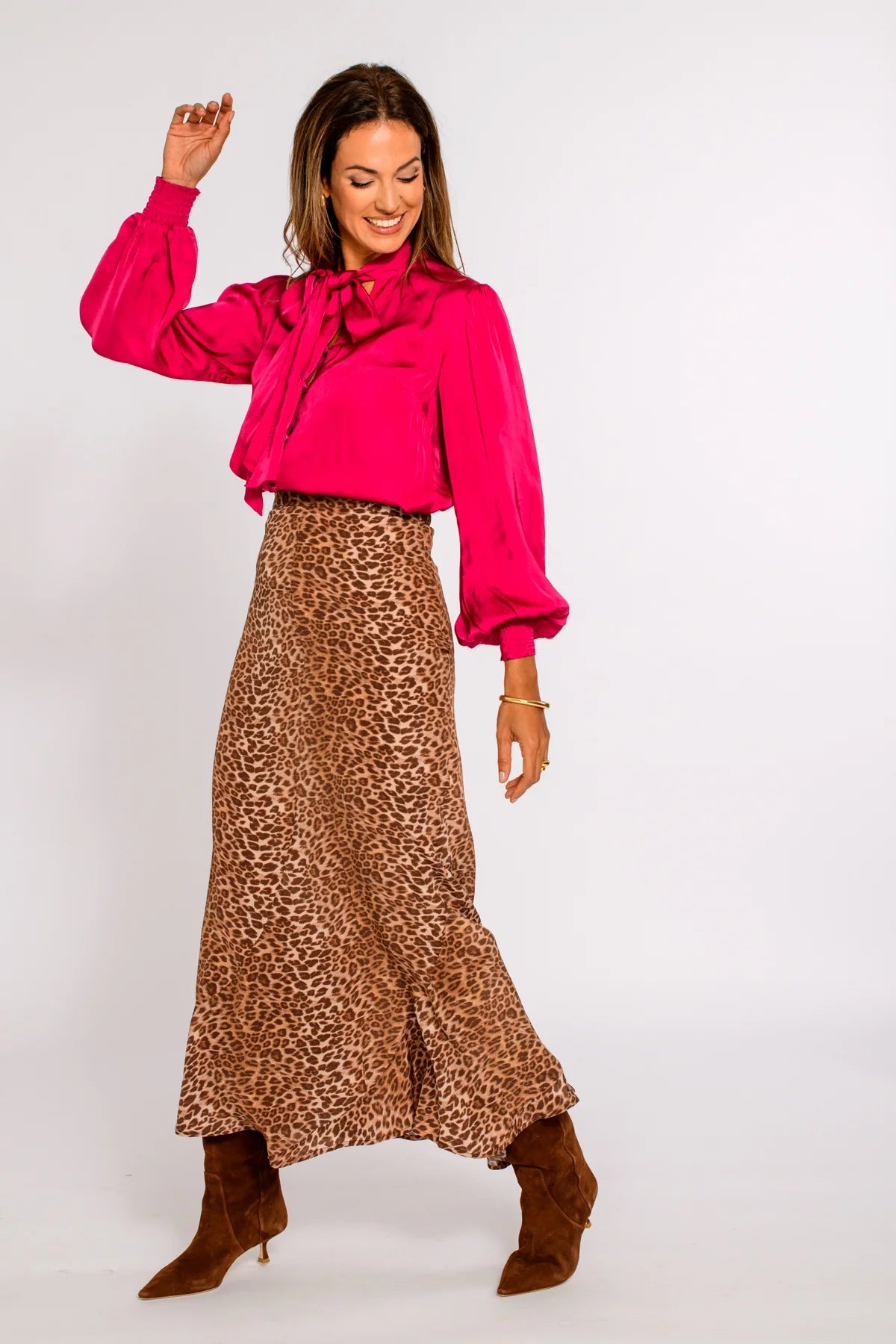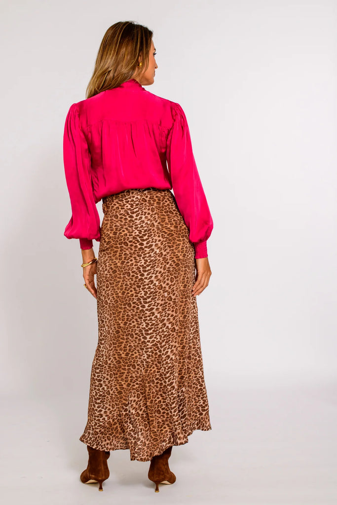 The Serena Skirt is a showstopper this season in a silky crepe fabric, featuring a chic fitted silhouette and flared hem. Perfect to style with a solid top, we especially love her paired with suede boots or heels.