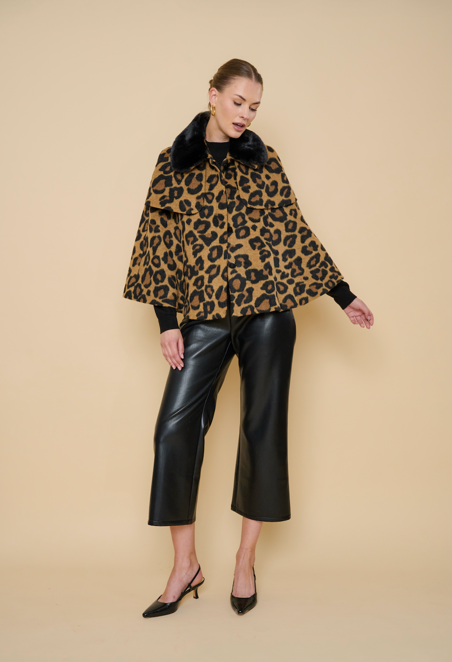 The Allie Cape offers a stylish twist on classic outerwear with its elegant cape silhouette. Designed to drape effortlessly, it provides lightweight coverage while allowing freedom of movement. Perfect for layering, this coat adds a chic, modern edge to any outfit, keeping you comfortably warm without bulk.