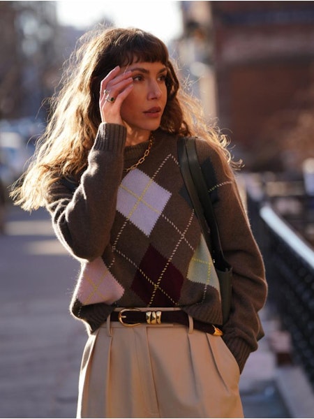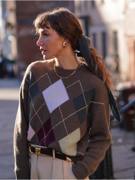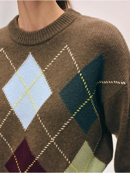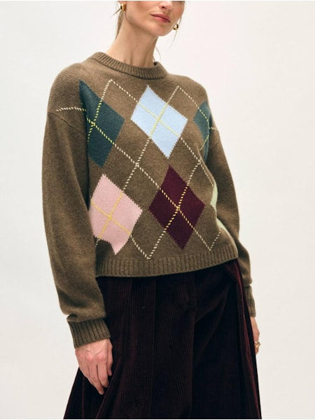 This Cashmere Argyle Crew Sweater offers a timeless pattern with the softness of premium cashmere. Ideal for adding warmth and style to your wardrobe, it provides cozy comfort while enhancing your look with a classic argyle design. Perfect for layering or wearing on its own throughout the cooler seasons.