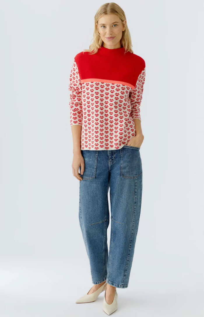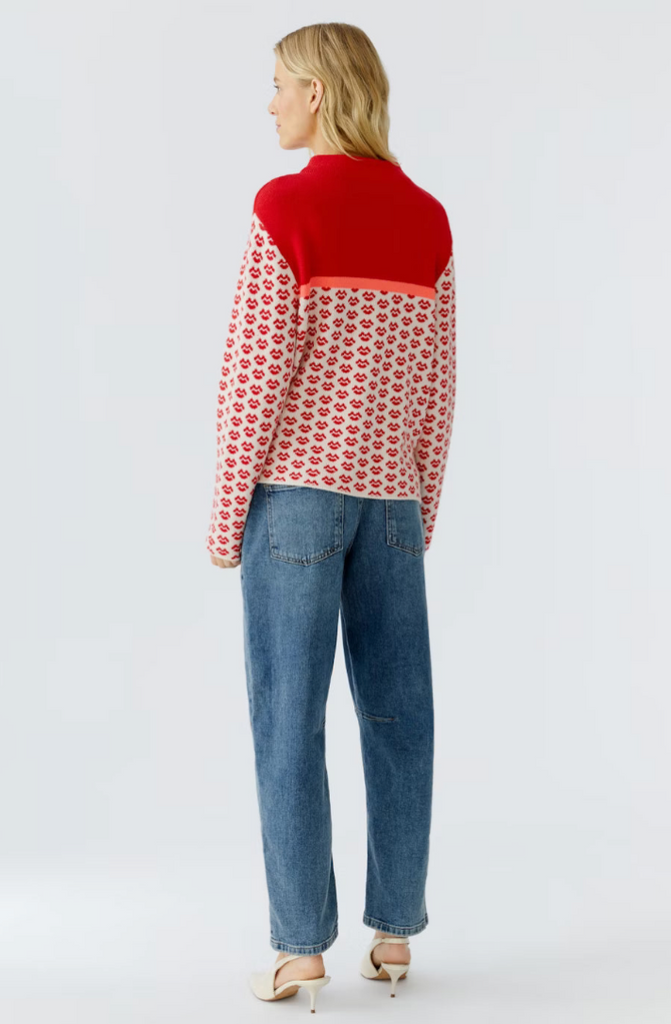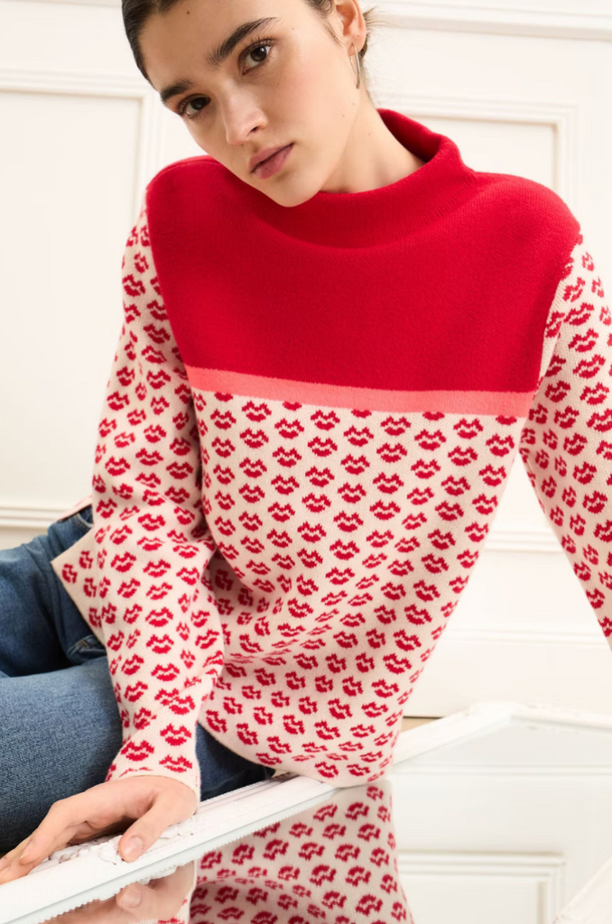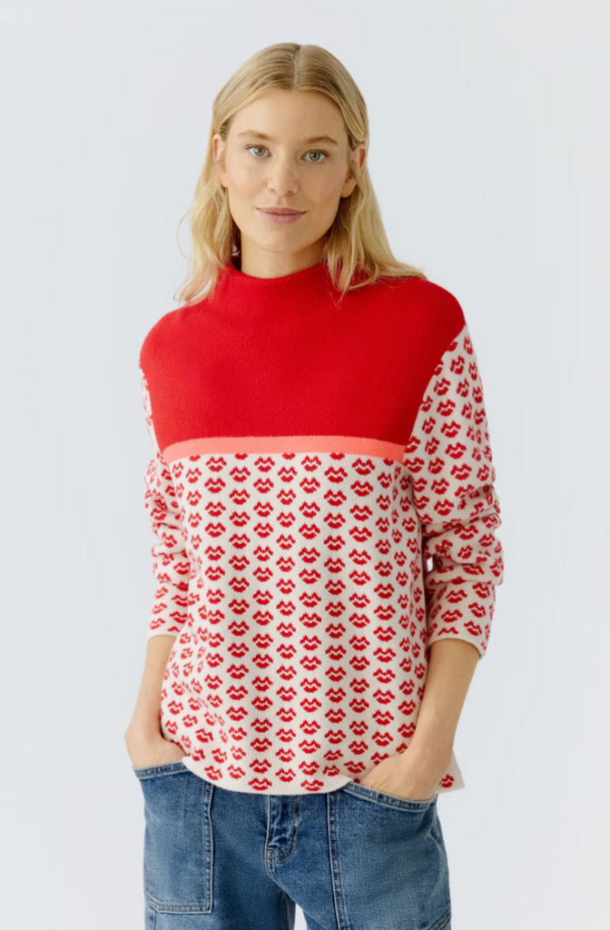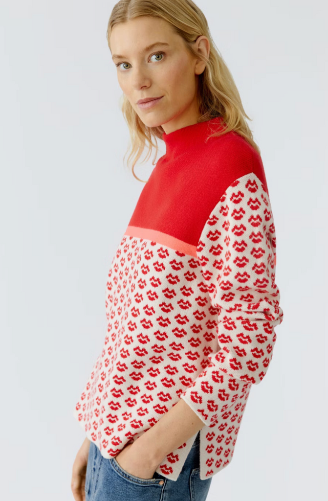 - Soft, cosy viscose blend, partly knitted with a graphic lip design in jacquard