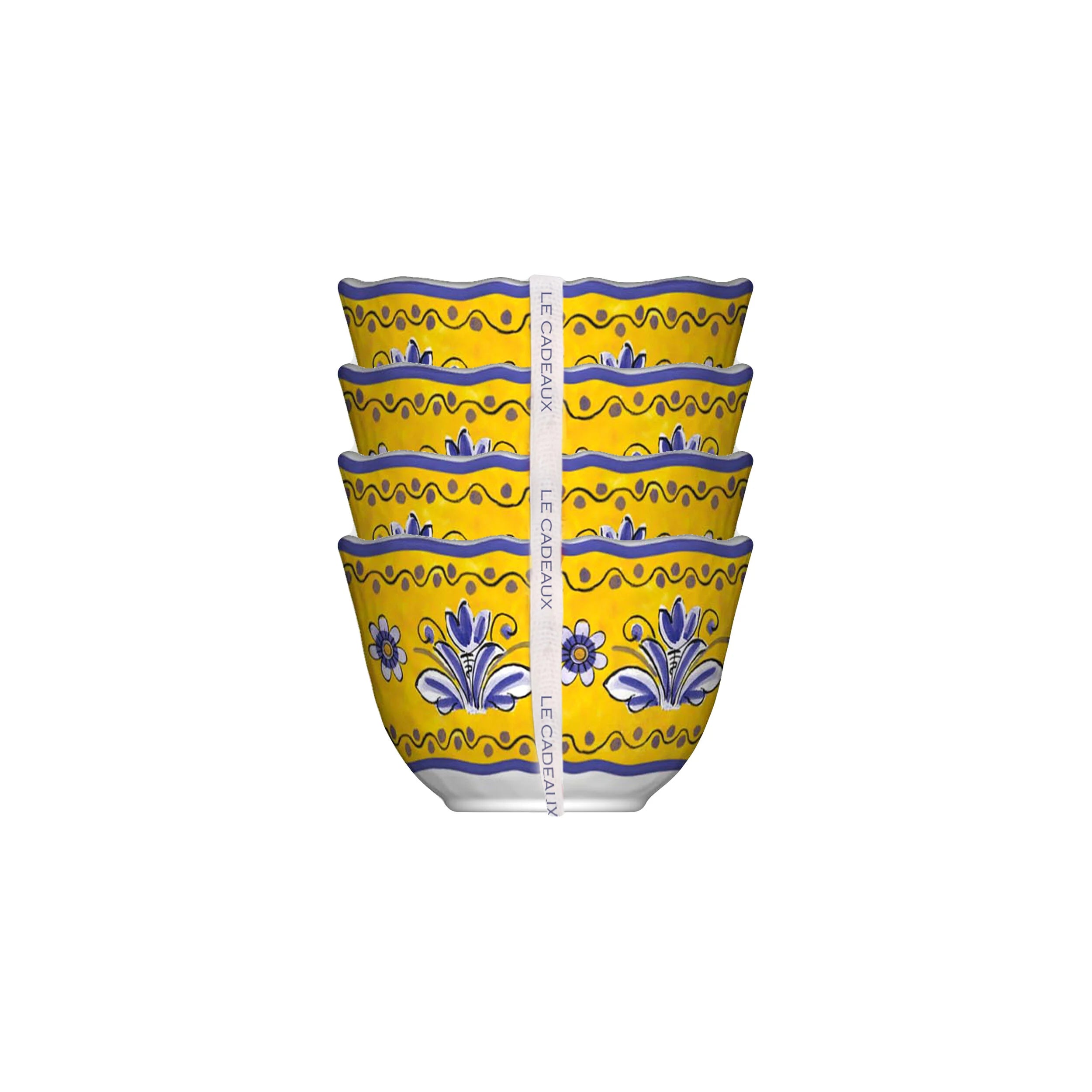 Whether for berries, small snacks, or other culinary adventures, the Benidorm set of 4 dessert bowls are versatile and already gift wrapped with ribbon and tag for effortless gift giving. To give or to keep - you decide! BPA Free 100% melamine, shatter resistant and dishwasher safe, top and bottom rack, as with all melamine, not recommended for microwave. Product includes 1 x Set of 4 Dessert Bowls that have a diameter of 4.5".