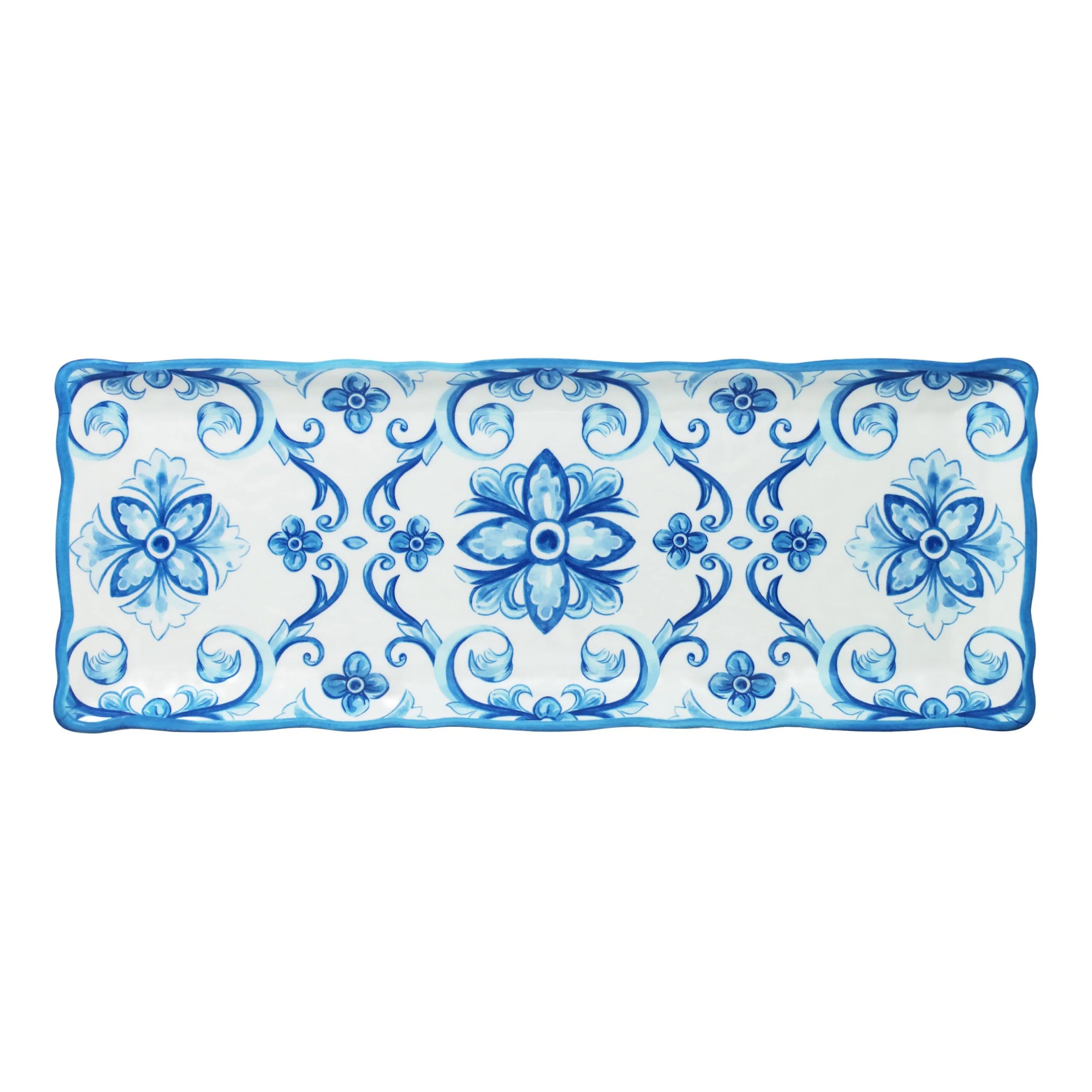 The Mallorca Baguette tray is the perfect serving piece for your favorite breads or can multi task as a small side dish serving piece. Made of exceptional weight with a lightly textured surface giving it the feel and appearance of real ceramic. BPA Free 100% melamine, shatter-resistant and dishwasher safe, top and bottom rack, as with all melamine, not recommended for microwave. Product includes one Baguette Tray with dimensions of 15" by 6".