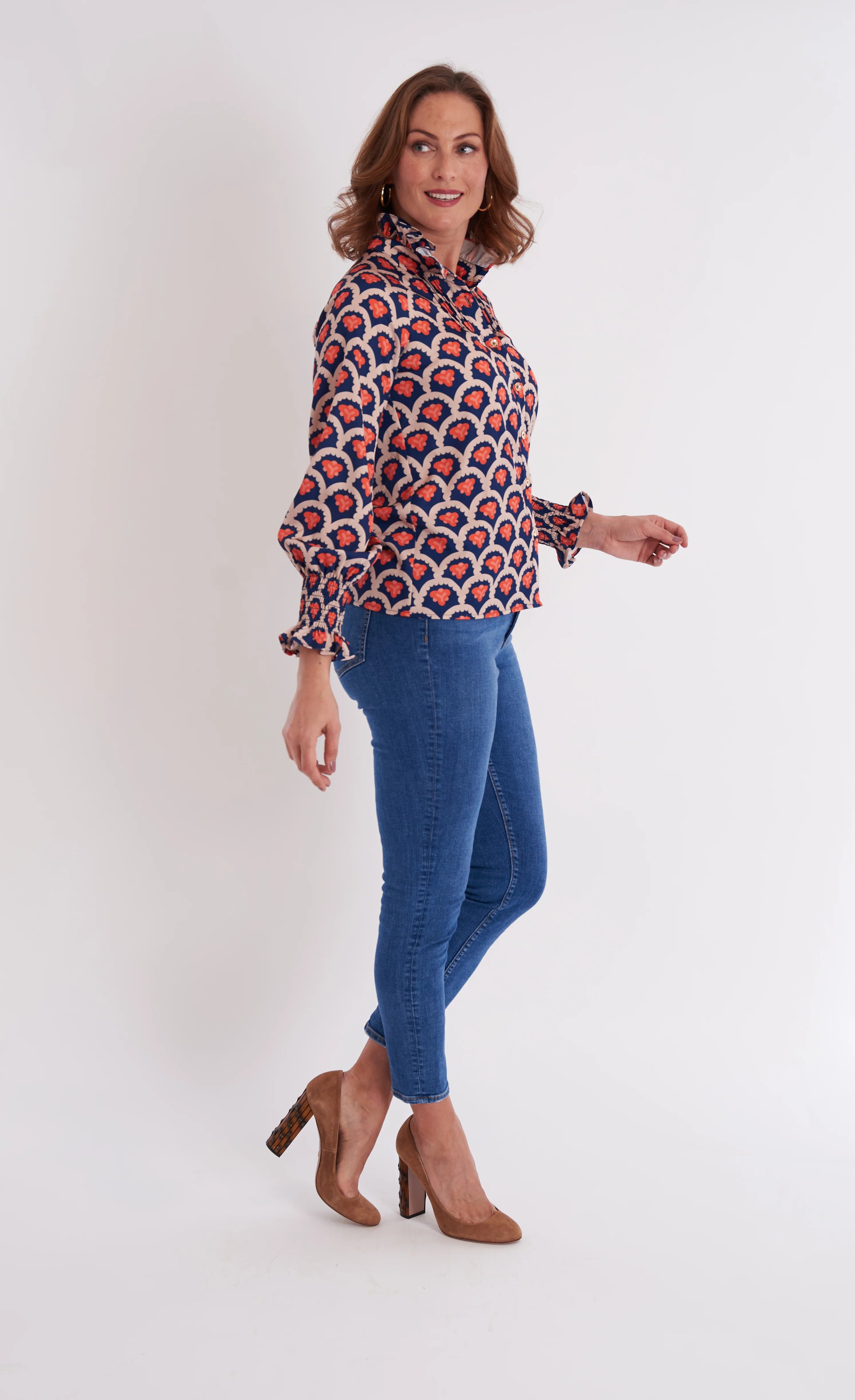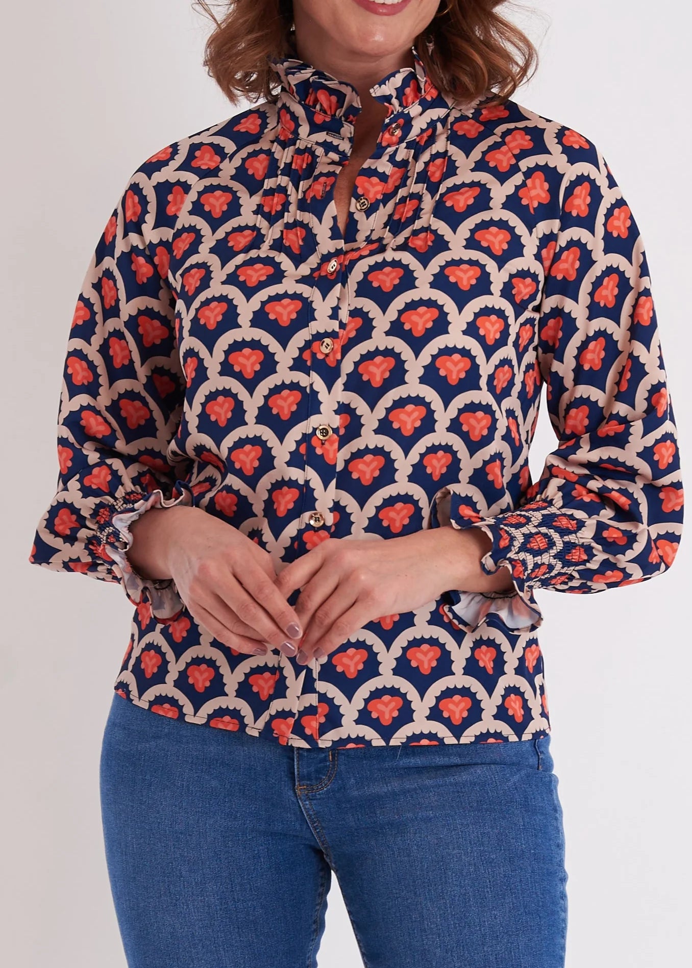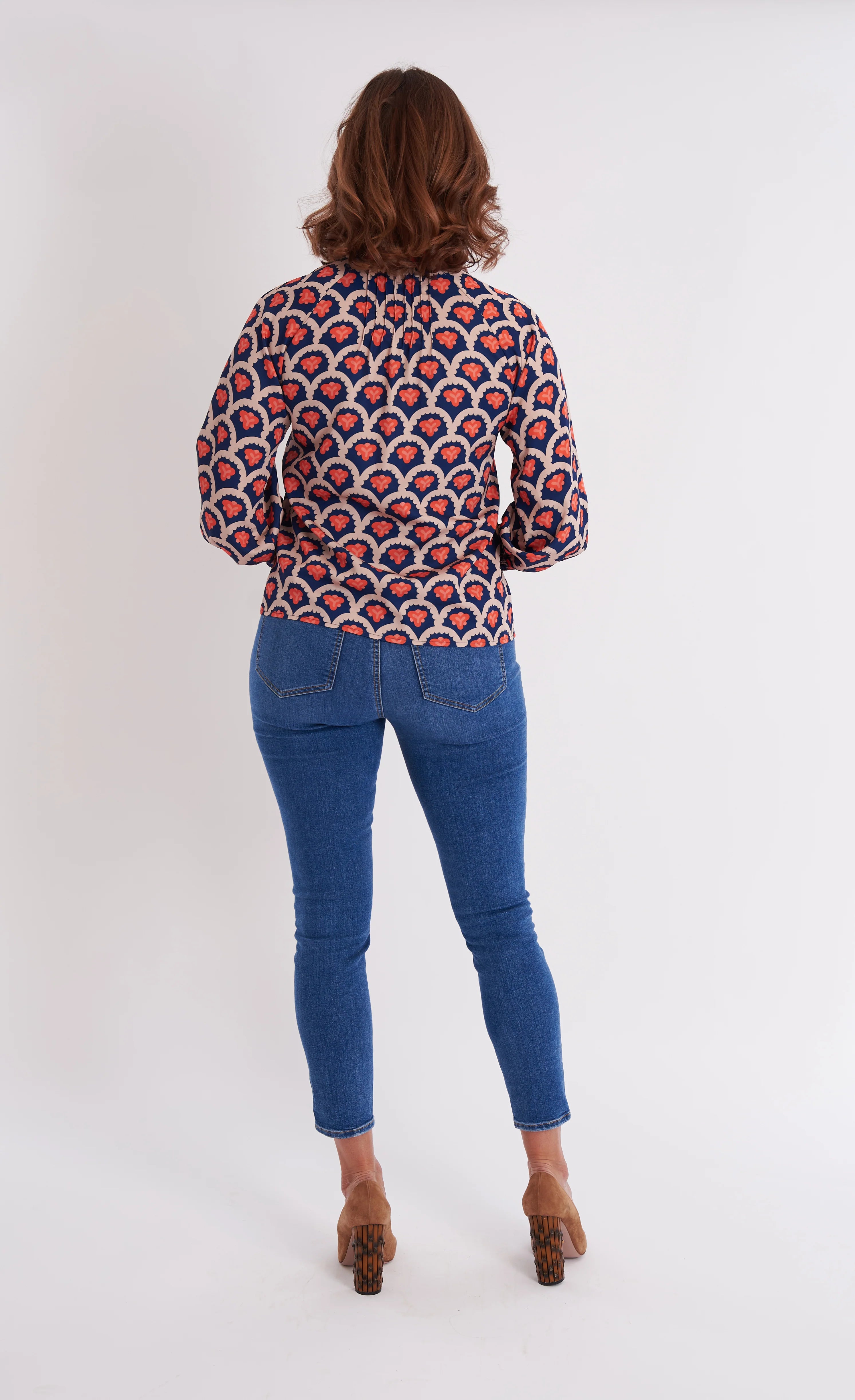 The Plato Blouse features a bold yet classic print that's sure to turn heads. With a high collar, button-front design, and elastic cuffs, it offers a playful mix of structure and comfort. Easy to dress up or down, this blouse adds a stylish twist to any outfit—whether you’re headed to brunch or the office.