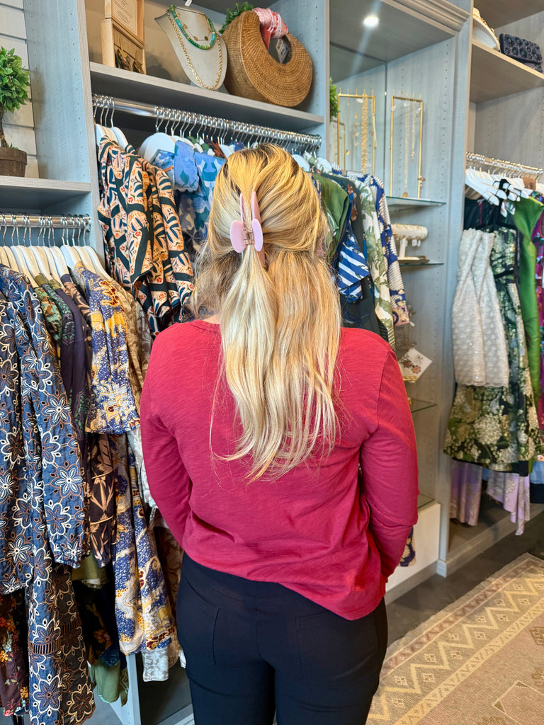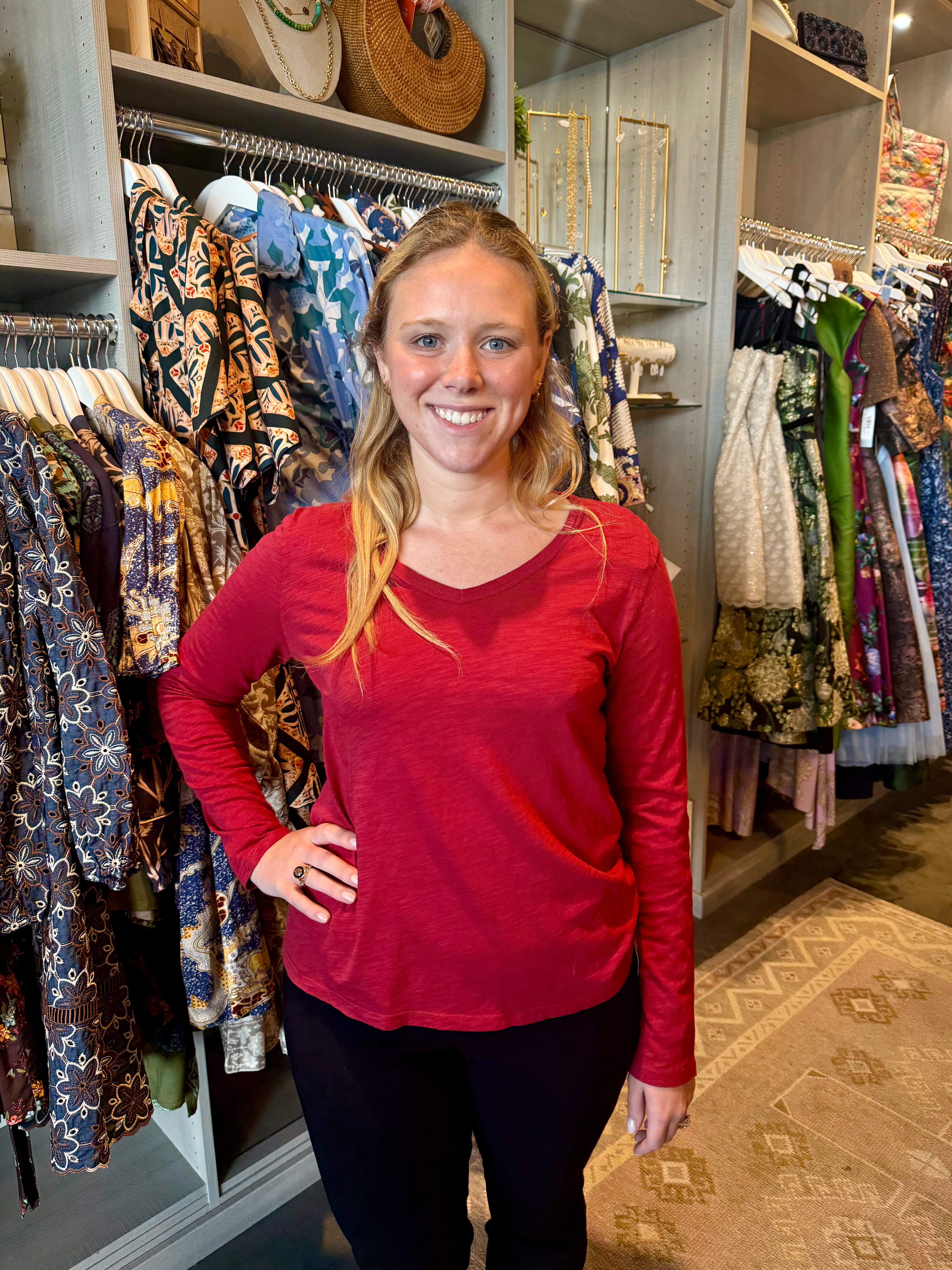 The V-Neck Tee offers a flattering neckline combined with long sleeves for added comfort and coverage. Made from soft, breathable fabric, it’s perfect for layering or wearing alone throughout the seasons. This versatile piece pairs easily with casual or dressier outfits, making it a timeless staple for your wardrobe.