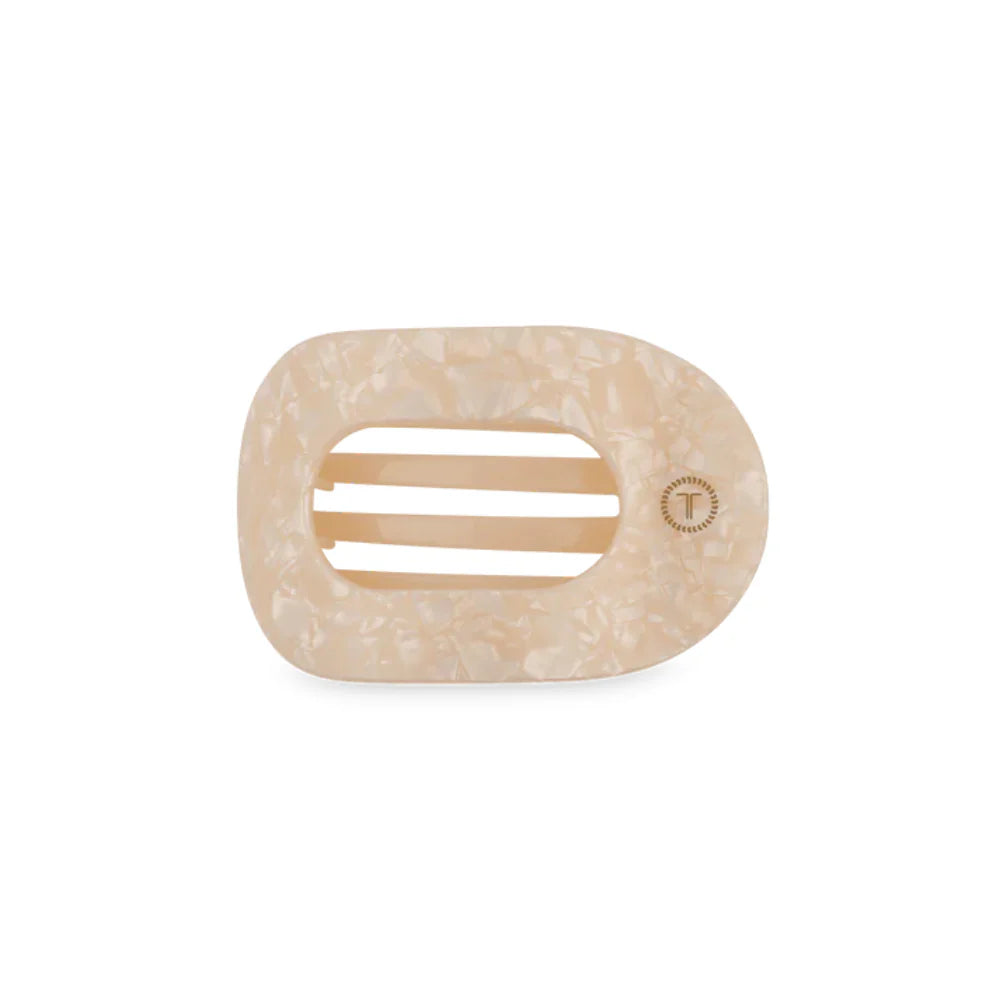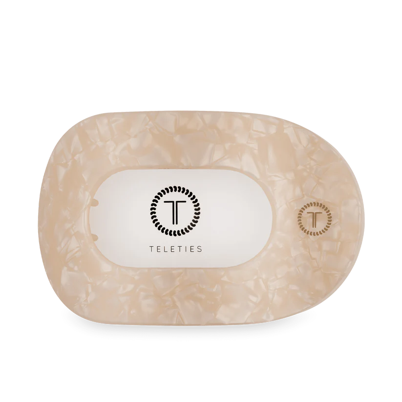Lay flat and relax with the new TELETIES Soft Surf Flat Round Hair Clip in Tan. This hair clip is designed to allow you to lay back flat, do yoga, or sit comfortably in a seat with a headrest, and it is made with the same material that is nearly unbreakable.