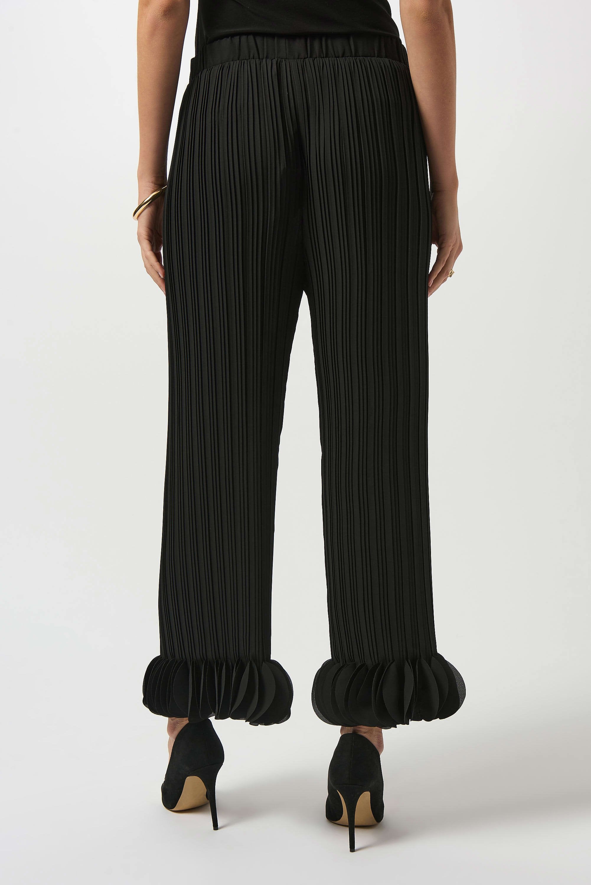 Steal the show in these stunning wide-leg pants, crafted from lightweight, flowy georgette for effortless elegance and movement. Delicate pleating adds volume and flair, while a structured contour waistband flatters the waist for a polished silhouette. A bold circle appliqué at the leg openings adds a unique, eye-catching touch, making these pants a perfect choice for any special occasion.