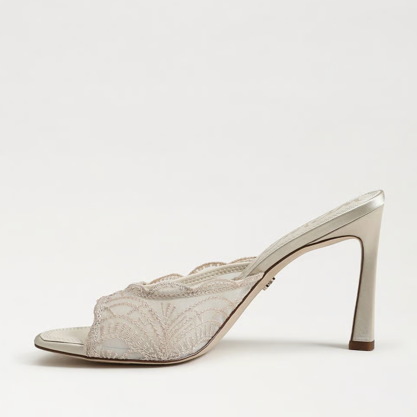 The Iva Mule Dress Sandal stands out with its sleek round toe and a stiletto heel, delivering modern flair and effortless polish for dress occasions. Its streamlined slide design and gorgeous lace detailing adds a touch of refined whimsy to any ensemble.