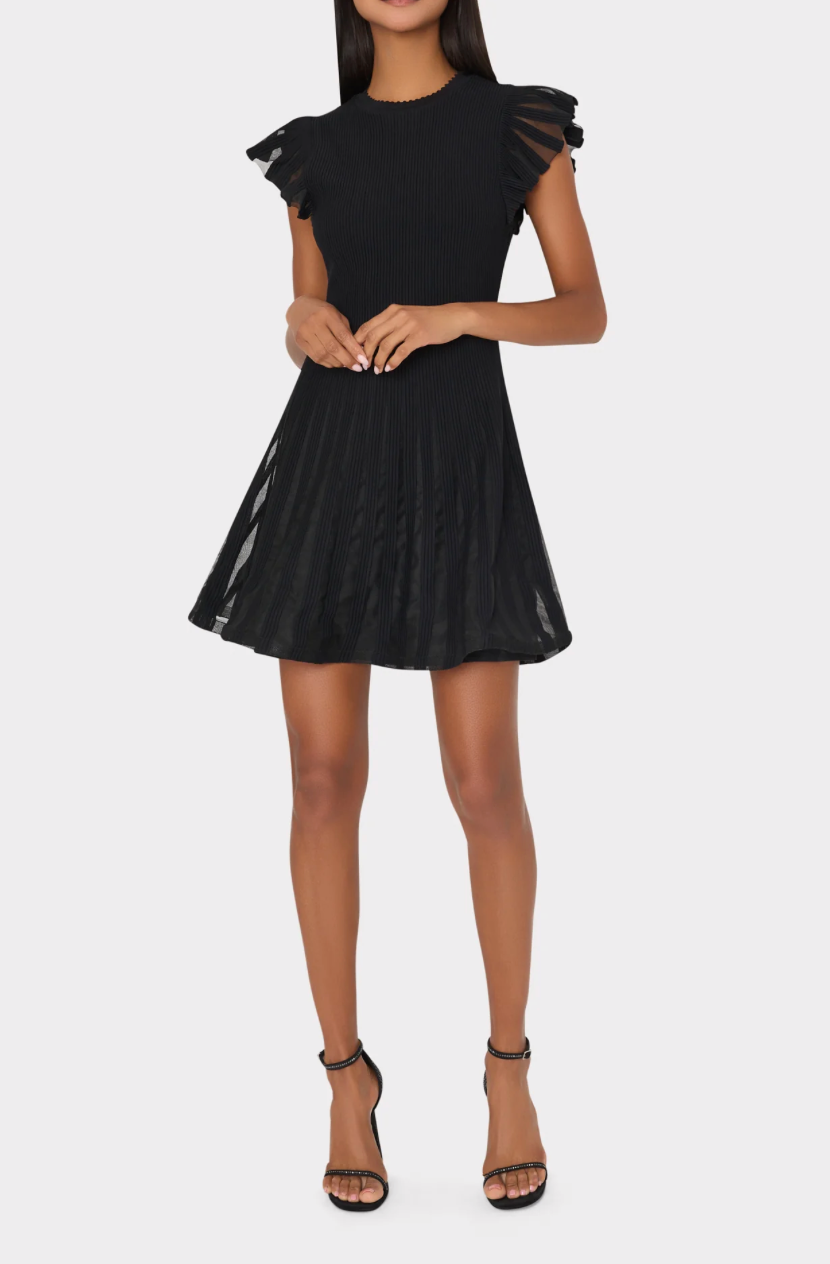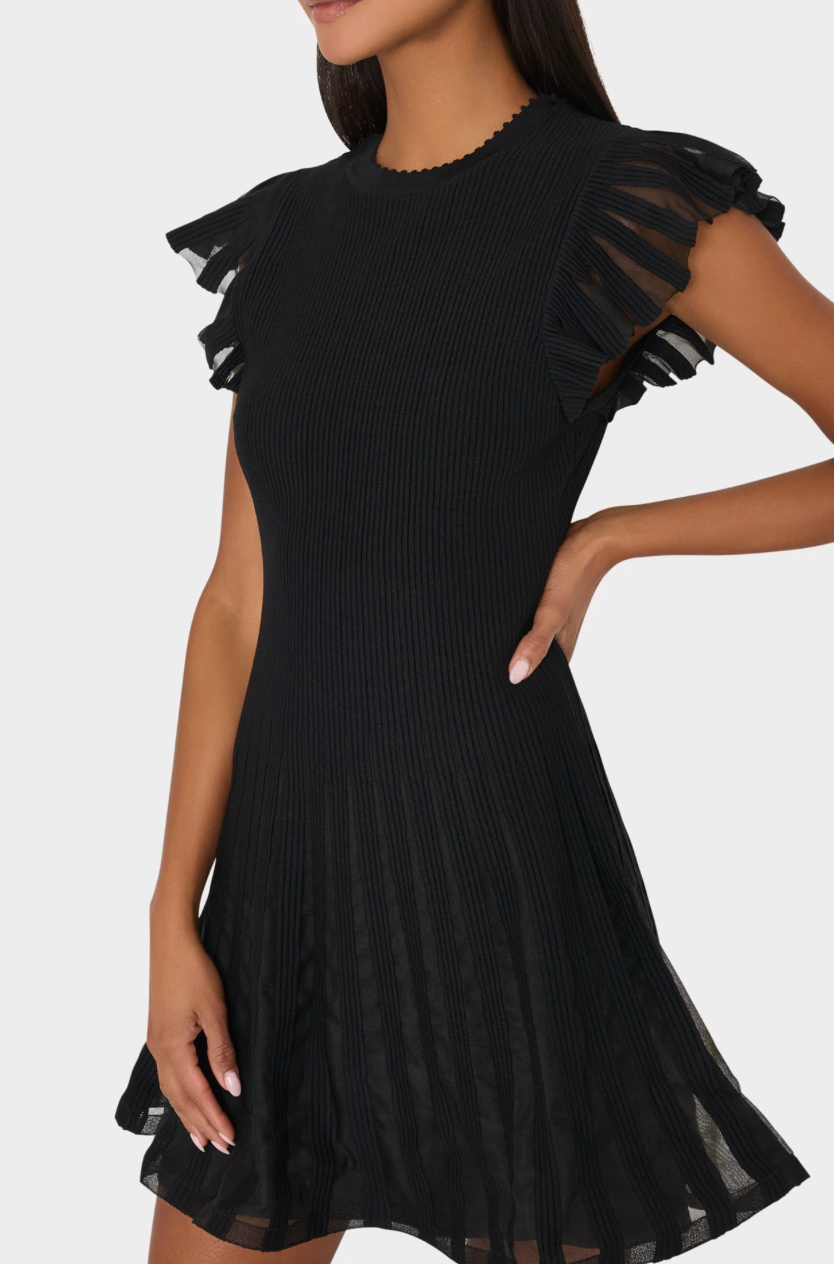 Sheer Flutter Sleeve Knit Dress