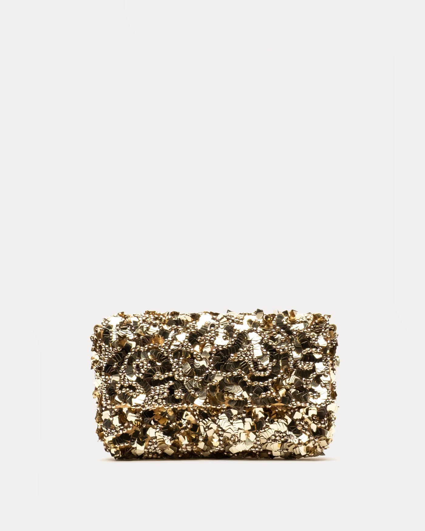 A little sparkle goes a long way, especially when it’s the Stardust Sequin Bag. Covered in a dazzling mix of gold and champagne sequin appliqué, this shoulder bag is designed to catch the light (and every compliment in the room). The removable strap lets you switch from shoulder to clutch in seconds, a glamorous fusion of sparkling sophistication. Perfect for evenings out, holiday parties, or anytime you want to glow all out.
