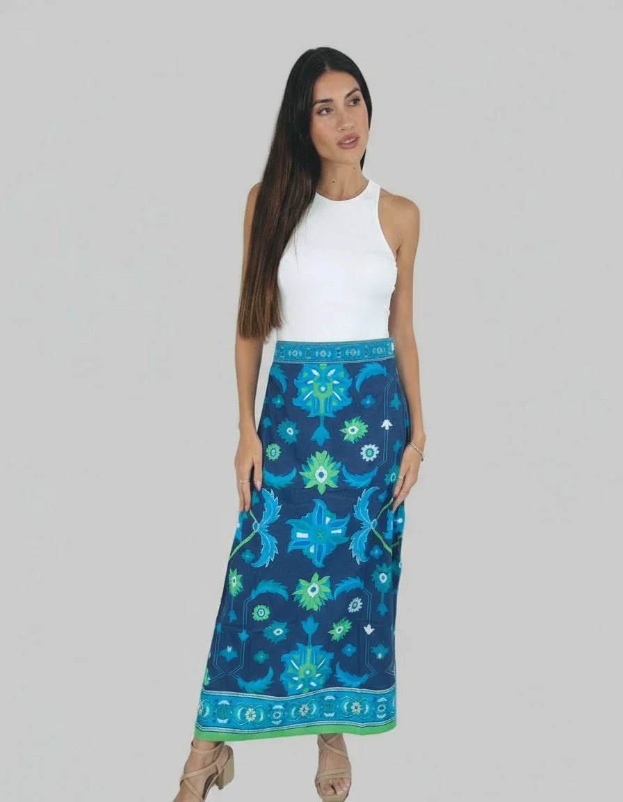 The Aix is a stylish and slimming A-line skirt with side slits that allow easy movement. We love the elastic on the back waist band that gives a perfect fit. It has a button on the side with a side-zip.