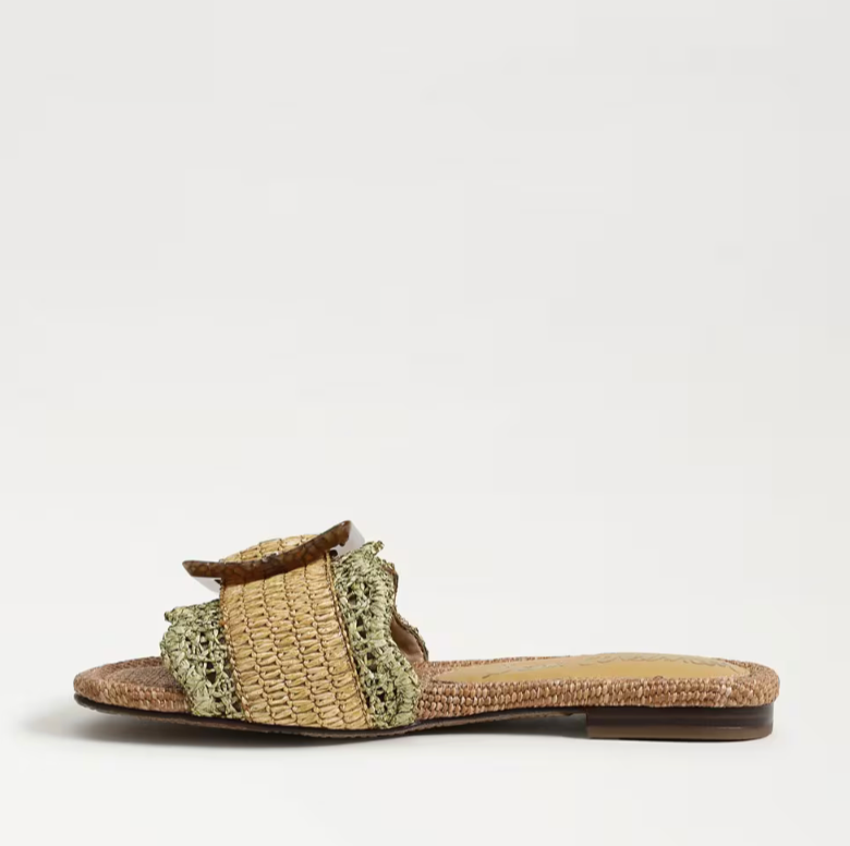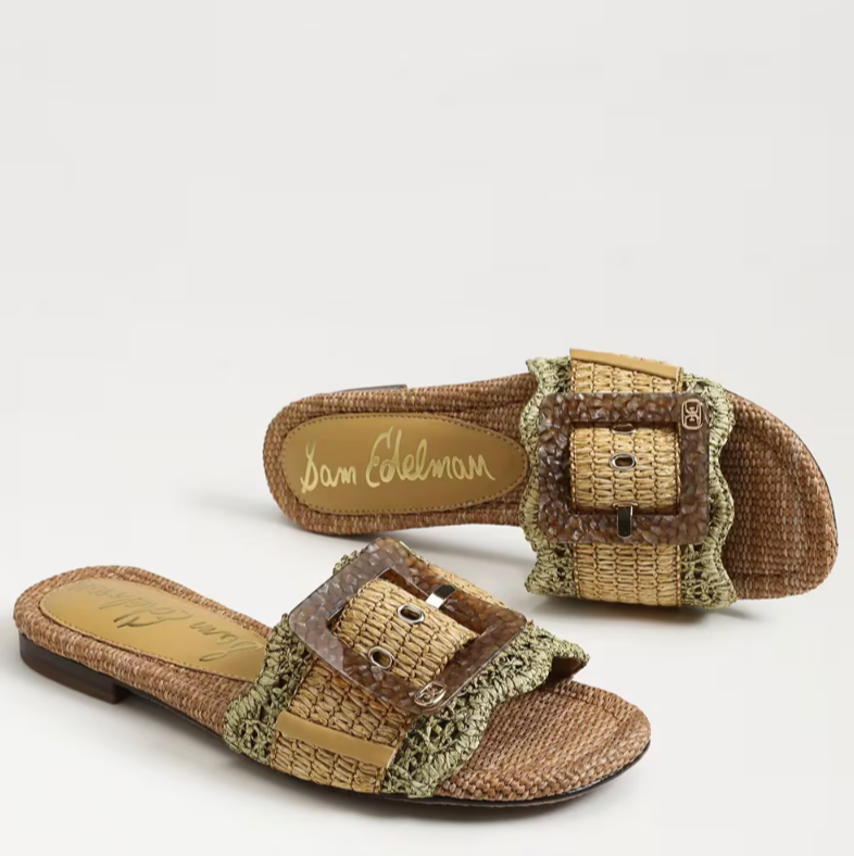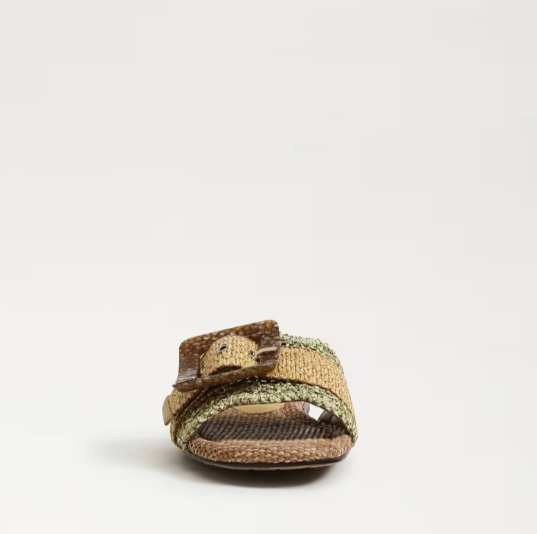 The Bambi slide sandals boast a raffia upper complemented by an oversized resin buckle. Play with proportion and pack a punch.