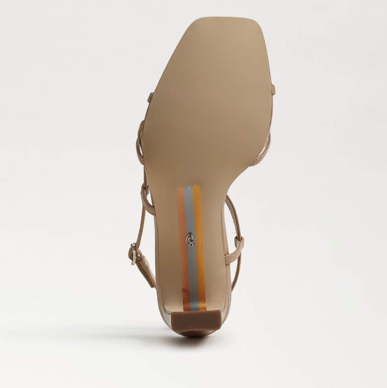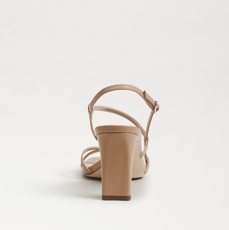 Bold, sculpted lines and block heel bring modern edge to this strappy sandal refined yet striking, it delivers statement style for dress occasions. Minimalist straps and an open toe create a sleek, day-to-night silhouette.