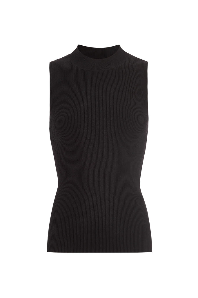 Cut in a lightly compressive rib knit, this sleeveless mock neck tank has become something of a staple at Marie Oliver. Its 90s-inspired look tucks beautifully into structured shorts, skirts, and wide-leg pants alike. Crisp and classic Black makes any outfit modern.