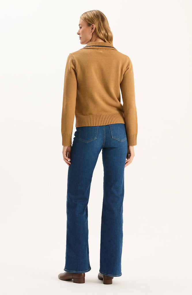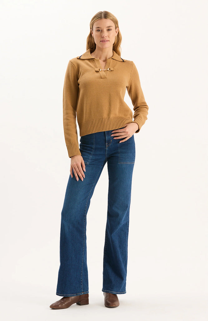 Equestian chic in our favorite new knit. A classic with modern details—it features a collared v-neckline, ribbed cuffs and hem, and bit closure detail. Elegant and timeless, this piece is an essential for your fall wardrobe and beyond.