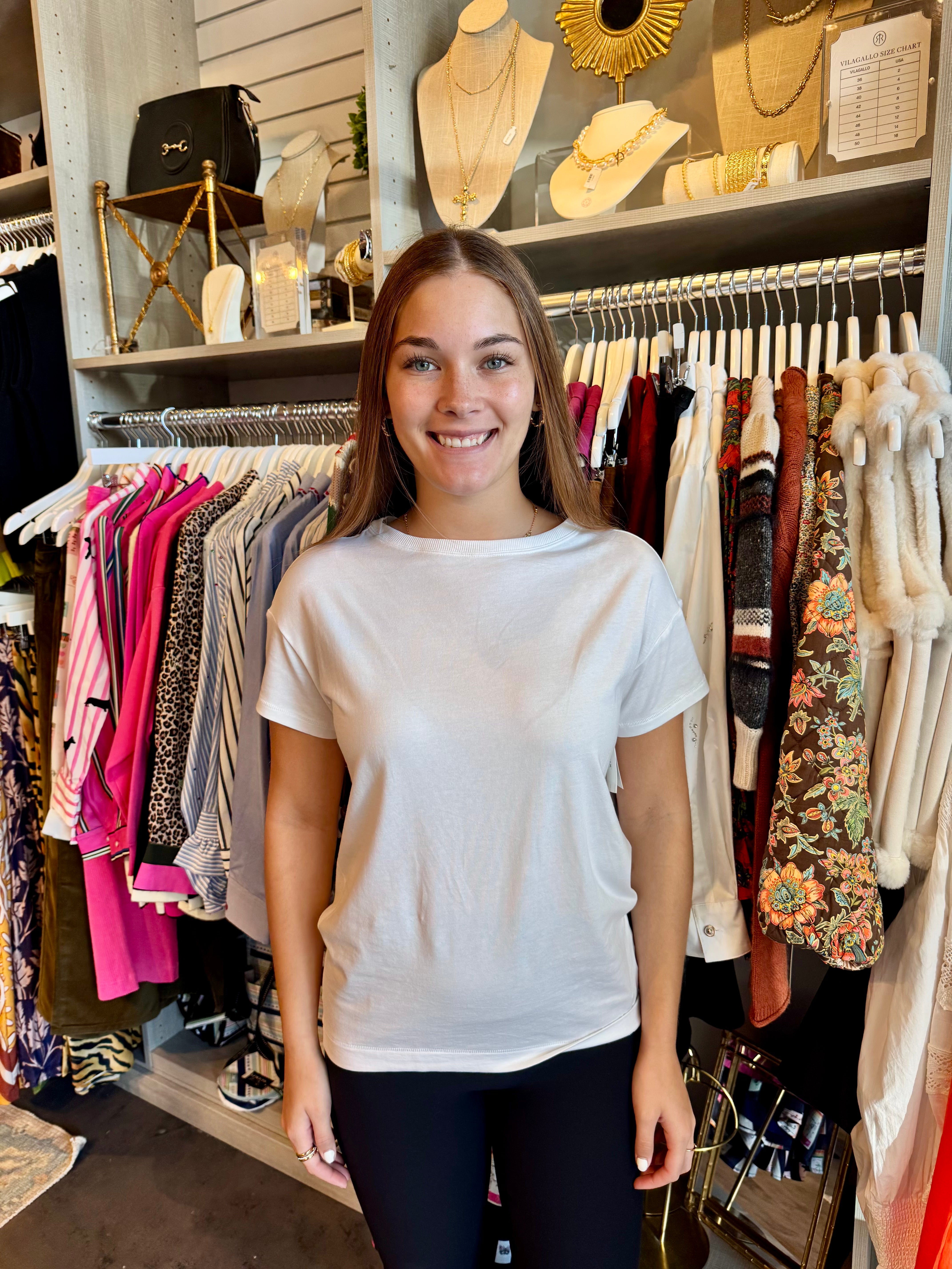 This short sleeve boatneck tee from Spanx offers a comfortable fit and a stylish neckline that flatters any look. Perfect for everyday wear, it combines simplicity with a touch of elegance, making it easy to pair with your favorite bottoms.