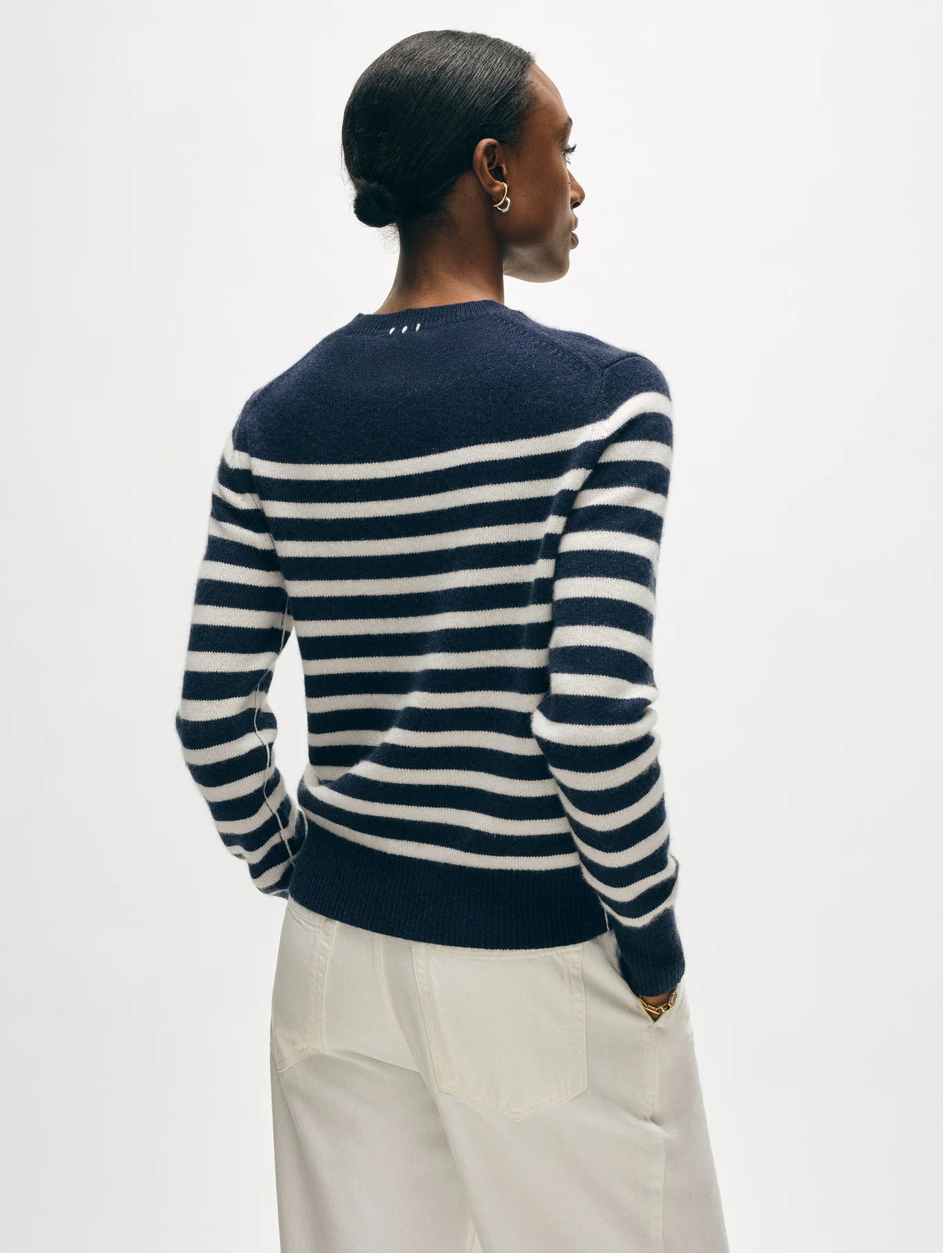 The Cashmere Striped Crewneck is knit of two ends of cashmere, making it a perfect year-round layer. With clean trims and a polished fit, this lofty style feels weightless on the body. Enjoy subtle whipstitch detailing on the back neck.