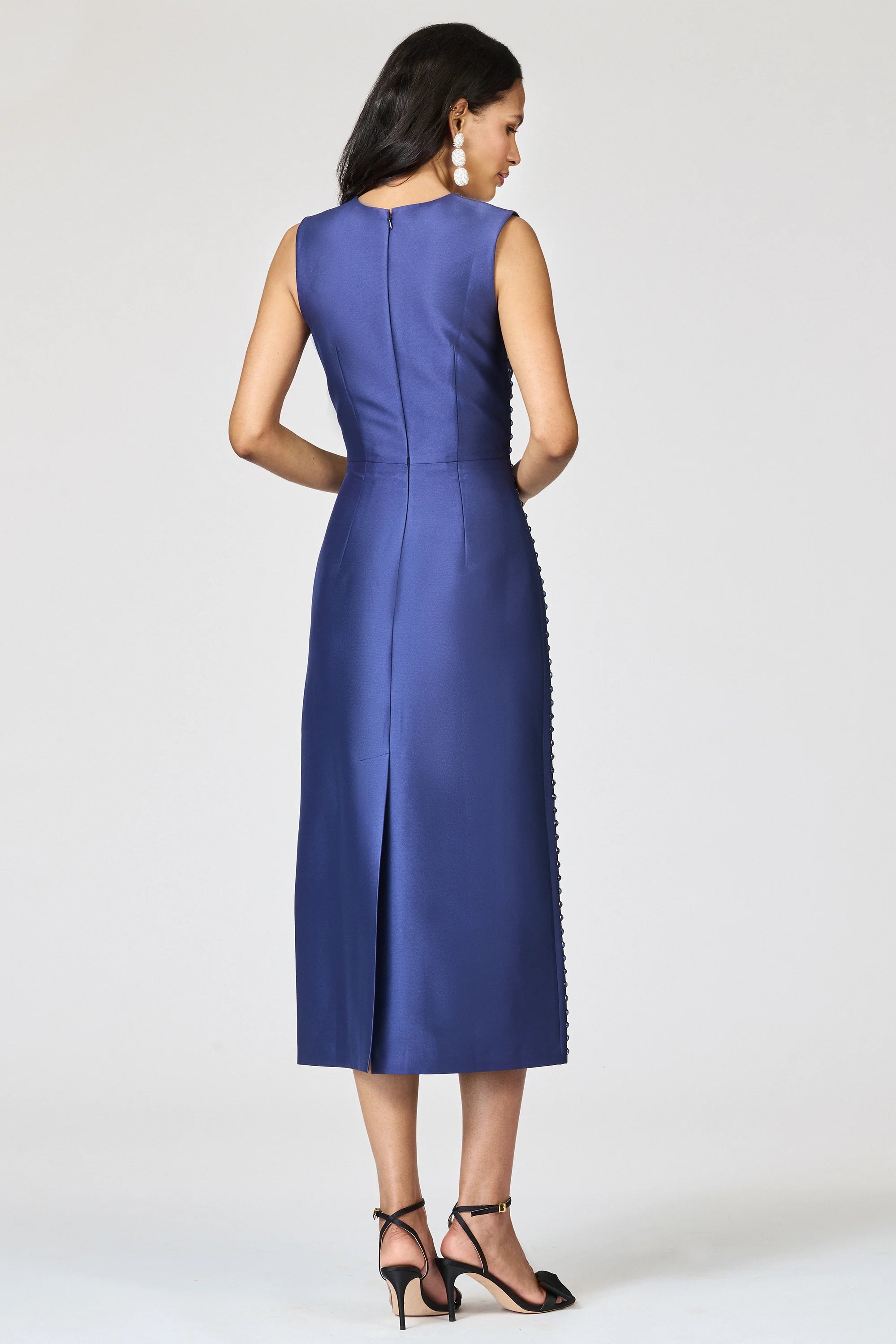 flawless, figure-defining fit. The clean scoop neckline frames the collarbone beautifully, while the sides are traced with dyed-to-match faceted crystal embellishment for a subtle touch of artisanal sparkle. Understated yet striking, Alba is designed for evenings that call for refined sophistication and timeless appeal.