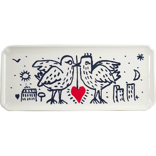 A beautiful earthenware cake plate with generous proportions and bright, cheerful colors. This high-end plate will be perfect for presenting your cakes in a long, elegant way. Its practical shape can also be used as a small platter. Each piece in the L'Archipel Sentimental collection tells a story inspired by the imagination of its artist, Jean-Charles de Castelbajac.