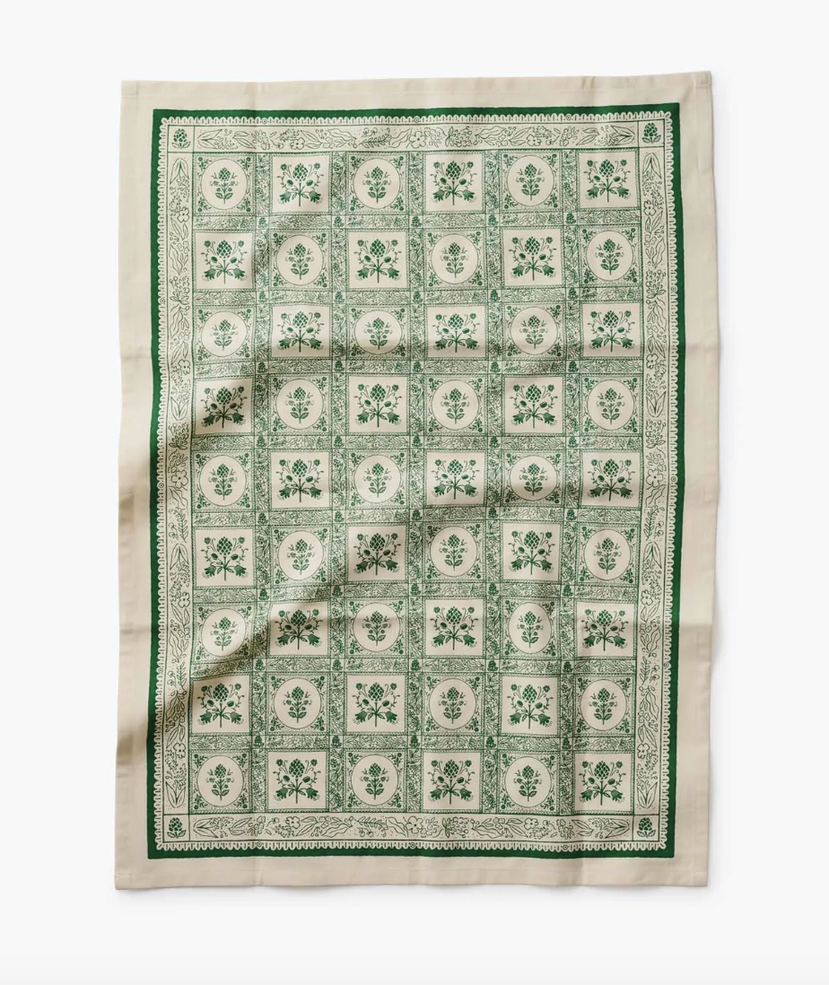 Vibrant and versatile, this printed tea towel is perfect for lining a bread basket, drying dishes, or simply adding a bit of color to the kitchen.