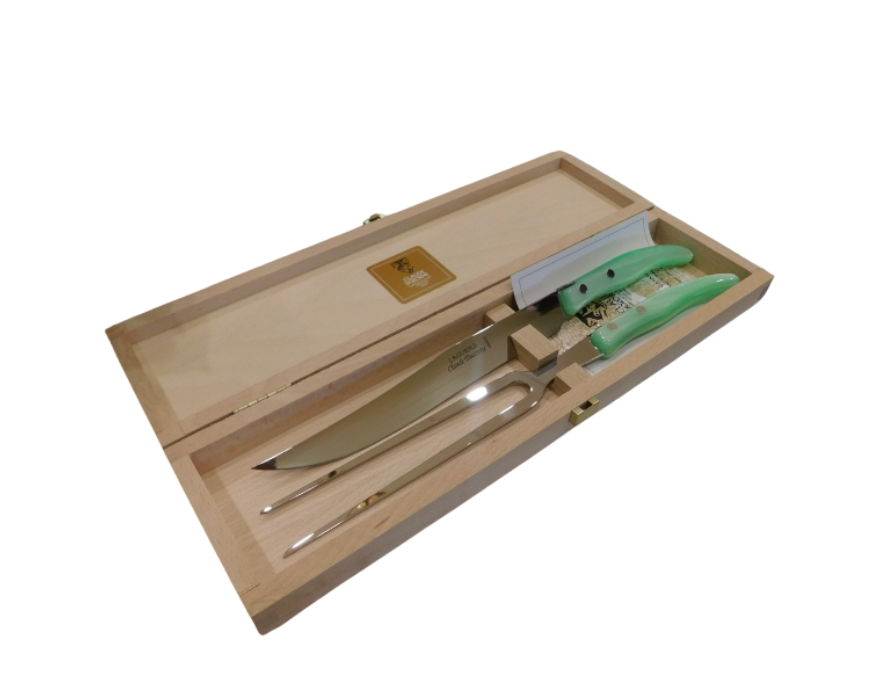Elevate your dining experience with the Berlingot Carving Set. The perfect addition to your elegant Charleston home, this set features exquisite craftsmanship and precision for effortless carving. Enhance your culinary creations with the sophistication and luxury of Laguiole!