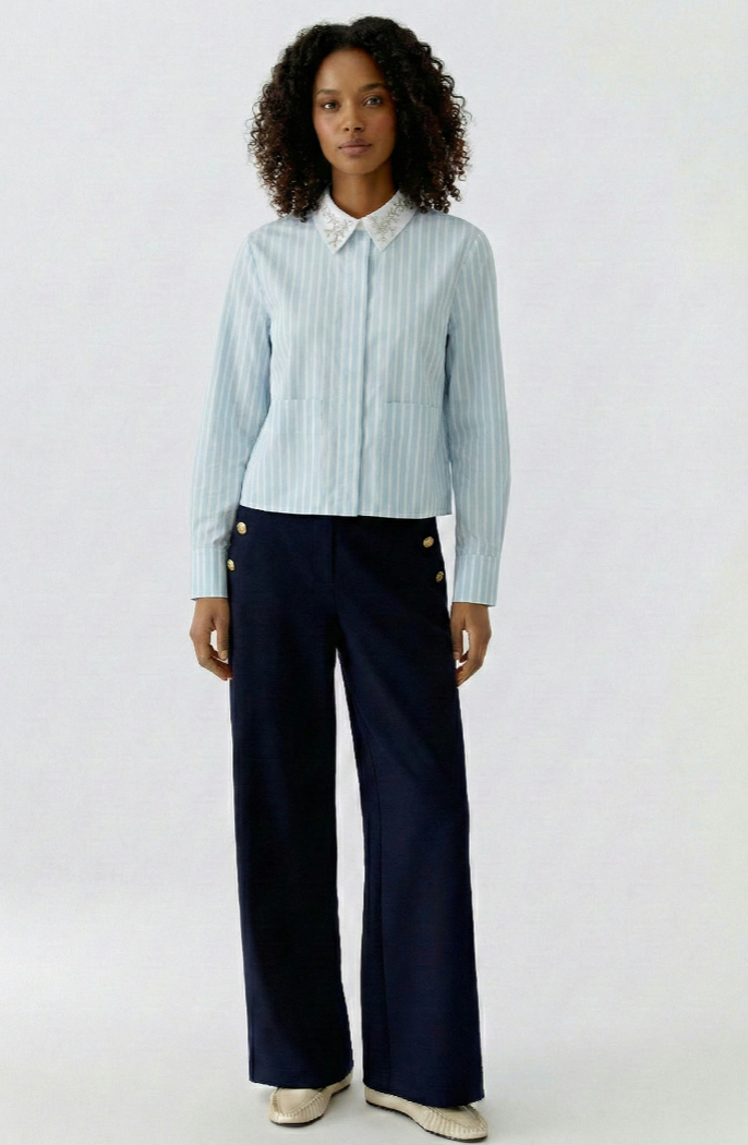 - Classic shirt blouse collar with concealed button placket