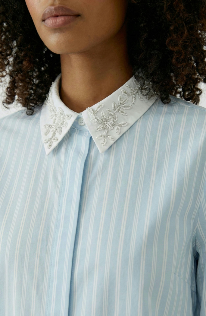 Blouse - boxy cut - with decorative jeweled collar fully embroidered with shiny floral beads