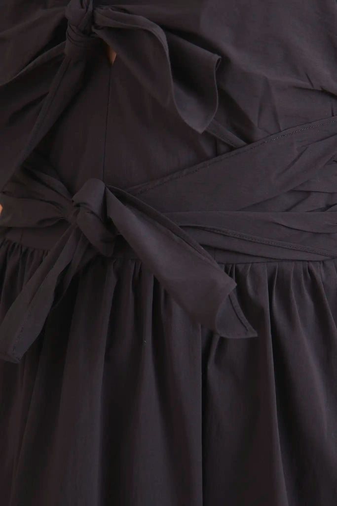Introducing the Calista Dress, a striking new silhouette in the HB lineup and destined to be a wardrobe favorite. In timeless black, it is anything but basic. The elegant V-neckline and sleeveless design are elevated by adjustable tie-front details at the bust and waist, creating a feminine, figure-flattering shape that feels custom-made. A full skirt moves with graceful ease, while the structured cotton-nylon blend with soft stretch lining ensures all-day comfort without losing its polish. Whether styled simply for a sleek, modern look or accessorized for an event, Calista proves that a solid black dress can be the most memorable piece in the room.