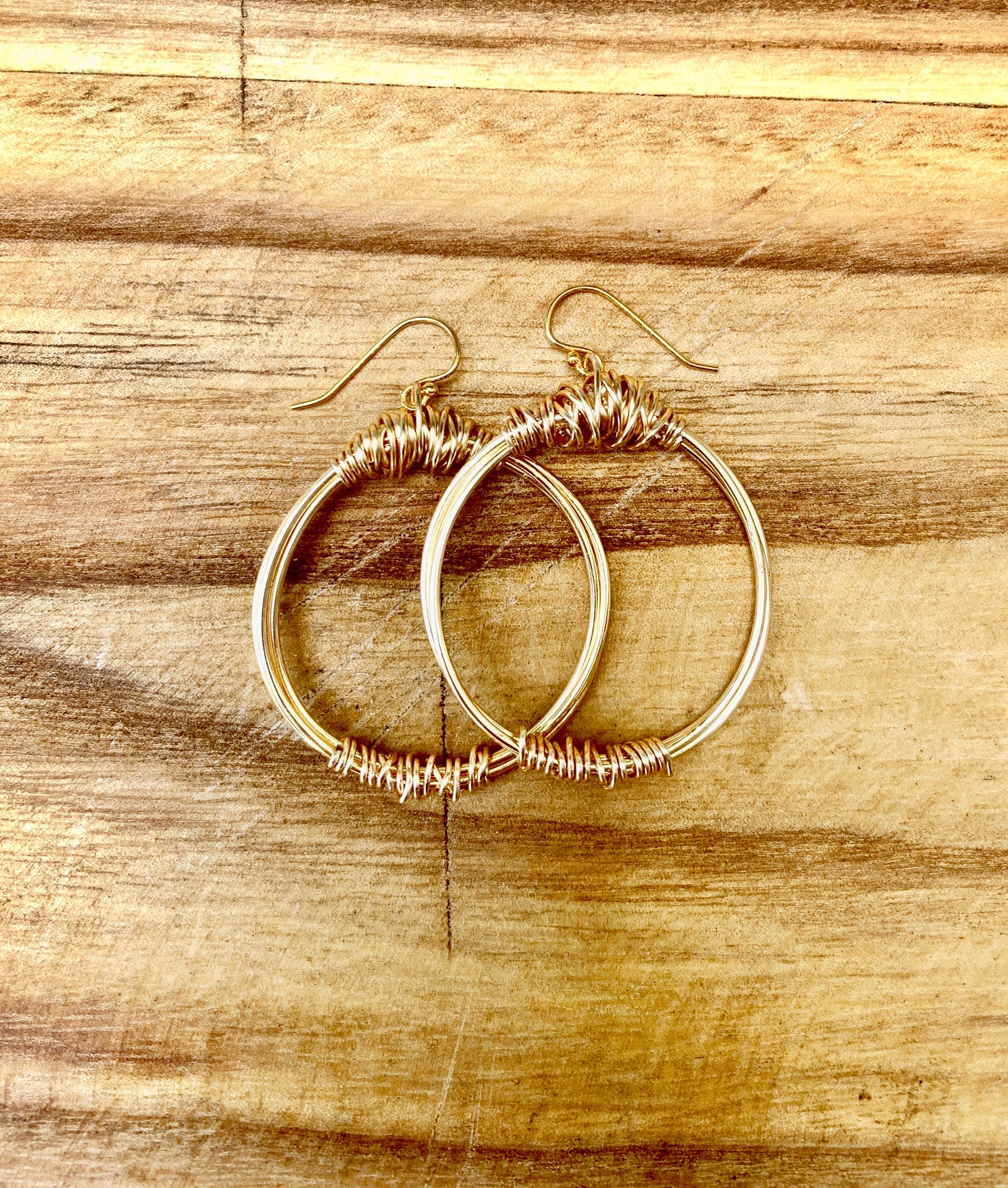 Indulge in luxury with these Medium Gold Hoops. Hand wired and 24kt gold filled, these hoops exude elegance and sophistication. Elevate your style with these timeless pieces that are perfect for any occasion in Charleston. Experience the beauty of artisanal craftsmanship and the opulence of gold.