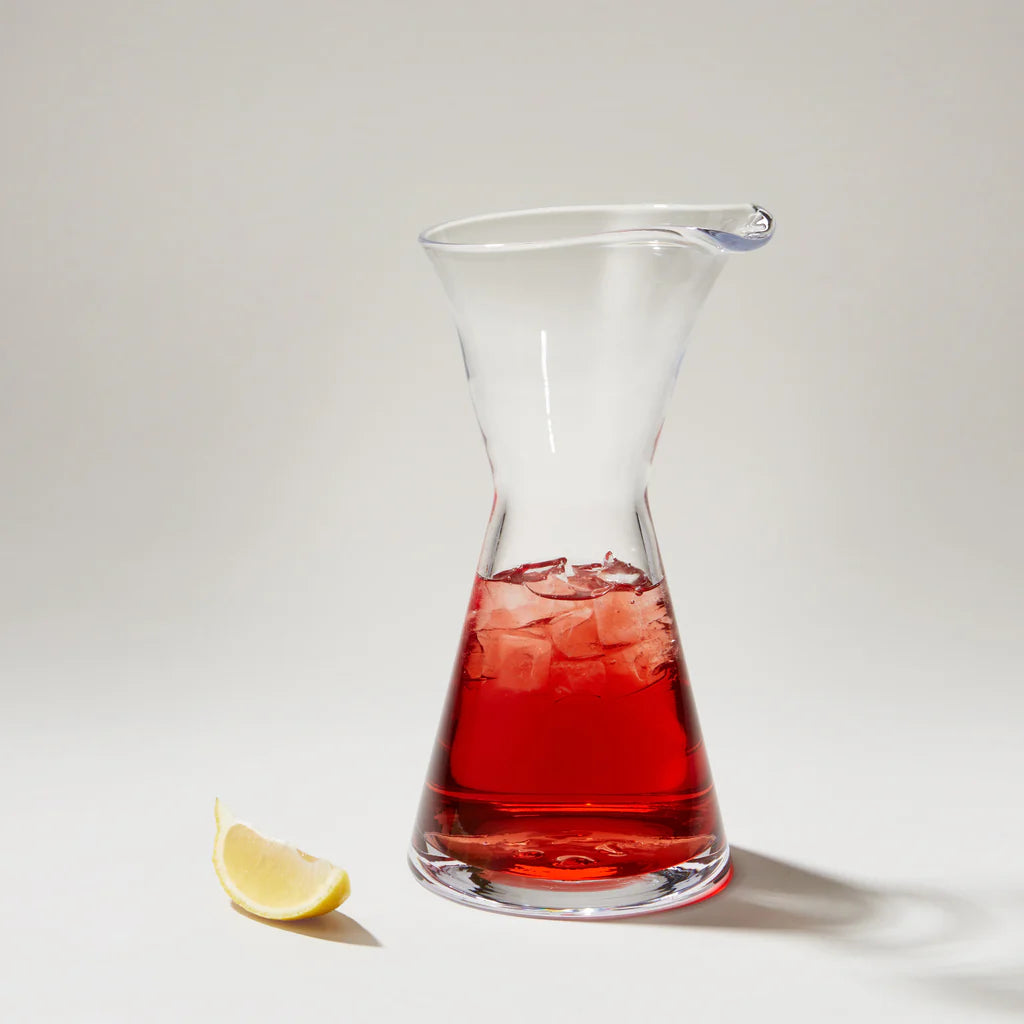 The Westport Quartino is a modern glass carafe designed around the Westport Collection’s signature geometry. Formed from two inverted cone shapes, its tapered, handle-free silhouette feels balanced, intuitive, and easy to hold.